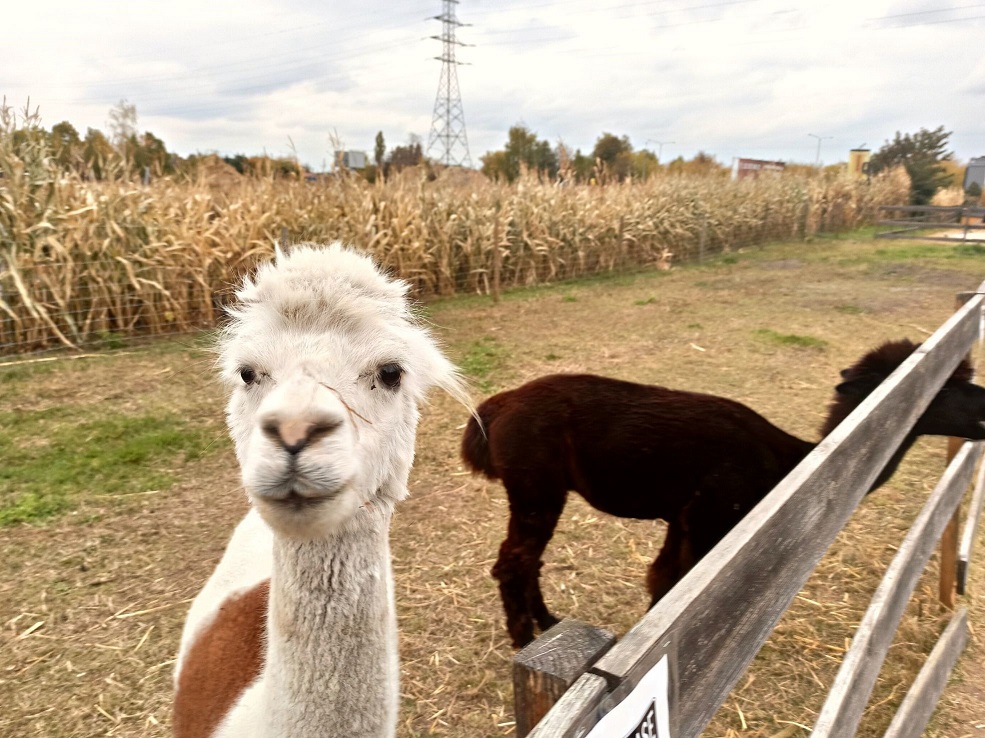 W różnych zagrodach możemy obserwować, nakarmić, a nawet pogłaskać króliki, kozy i alpaki, ale na terenie przebywają jeszcze kury, gęsi, indyki i inne przedstawicielstwo ptactwa. Moje serce skradły miniaturowe króliki, które najchętniej zabrałabym ze sobą do domu. Natomiast alpaki miały jakiegoś focha i póki nie podeszło się do nich z marchewką, potrafiły całkowicie nas ignorować. Co więcej, nawet jeden zbłąkany kiciuś się tam znalazł. Nie wiem, czy przyszedł coś upolować czy po prostu zostać gwiazdą tamtejszego zwierzyńca 🙂