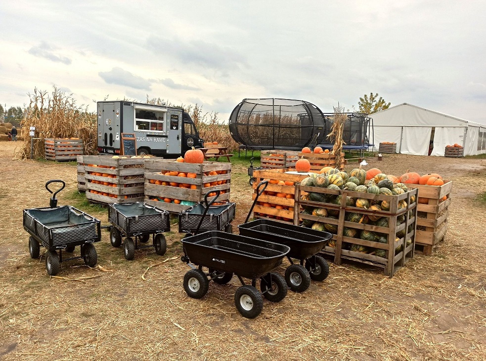 Jeśli zgłodniejemy lub zmarzniemy, na terenie znajdują się dwa albo trzy foodtraki z frytkami belgijskimi i burgerami oraz gorącą herbatą i kawą. Dodatkowo można sobie kupić sobie swoją wypatrzoną dynię i zabrać ją do domu. Ceny są rożne, w zależności od rodzaju tego warzywa. Trudno mi powiedzieć, czy są drogie czy nie, bo zupełnie nie orientuję się, jakie są „normalne” stawki za kilogram dorodnej dyni.