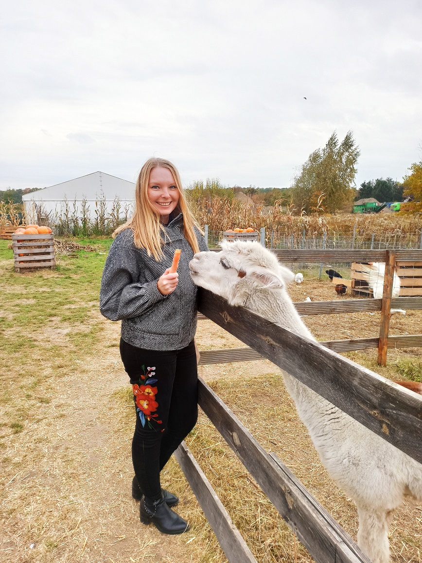 Poza milionem kolorowych dyń i ładnie przygotowanych aranżacji, na miejscu dostępne jest mini zoo. Przyznaję, że nie jestem wielbicielką tego typu miejsc i najchętniej zlikwidowałabym je wszystkie, ale gdy zobaczyłam tam te wszystkie słodziaki, całkowicie przepadłam.