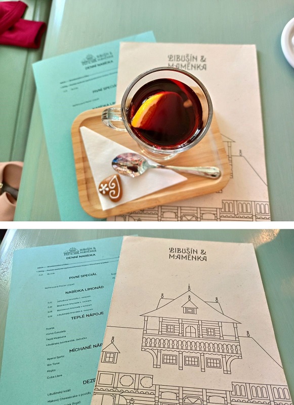 Restauracja Libušín serwuje dania kuchni regionalnej. Kuchnia czeska jest bardzo mięsna oraz ziemniaczana, ale tutaj jest także zaskakująca. Wbrew pozorom nie dostaniemy tam smażonego sera czy innych typowych czeskich specjałów. Co zatem warto spróbować? Moim zdecydowanym faworytem są placki ziemniaczane, które wyglądają bardziej jak naleśniki albo tortilla, serwowane z bryndzą, skwarkami i szczypiorkiem (195 koron). Wiem, nie brzmi to za apetycznie, ale gwarantuję, że takie połączenie smakuje obłędnie 🙂 Inną propozycją jest popularna w Czechach rozgrzewająca zupa czosnkowa na bulionie, ze skwarkami i grzankami (69 koron). Mniam!