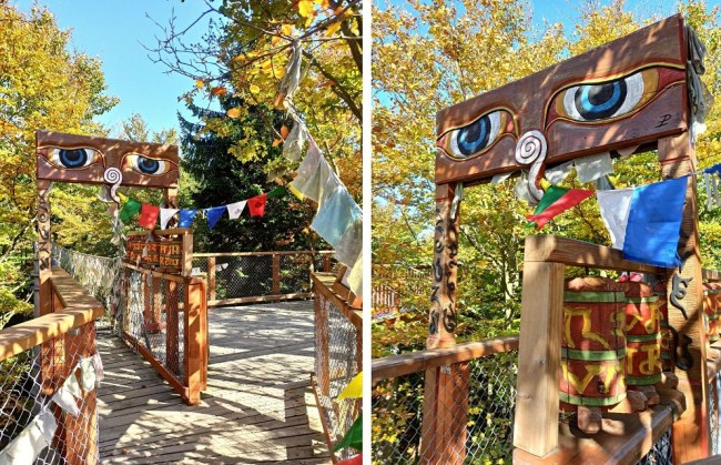 Bez wątpienia to największa i najbardziej zaskakująca atrakcja tego miejsca. To oryginalny most wiszący niczym w Himalajach. Jak to z wiszącymi mostami bywa, w trakcie spaceru mocno buja, dlatego trzeba się trzymać balustrad. Przy dobrych warunkach atmosferycznych przejście tą ścieżką sprawia wrażenie, jakbyśmy wędrowali przez dżunglę. Przez cały czas się zastanawiałam, czy rzeczywiście jestem w Czechach, czy może jakimś cudem przeniosłam się do Tybetu, Nepalu, a może Kostaryki?