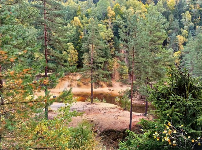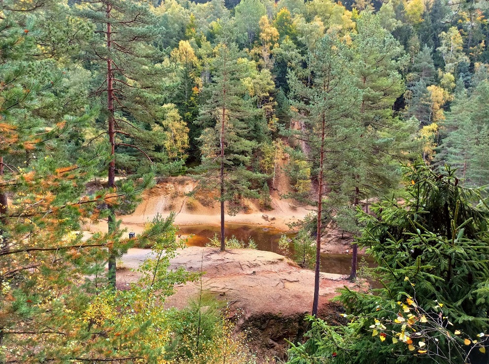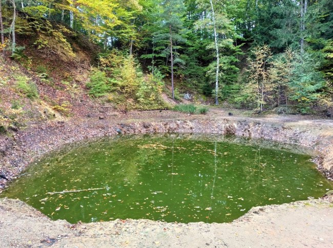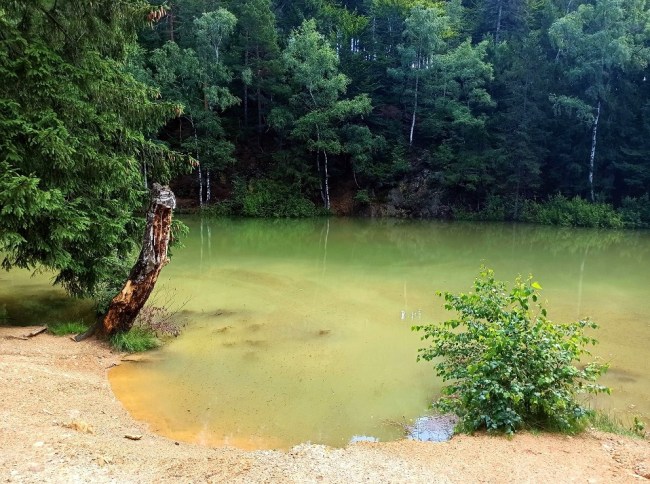 To pierwsze Jeziorko, z którym będziemy mieć do czynienia – tuż po wejściu do Parku Krajobrazowego znajduje się po lewej stronie. Tam również znajduje się punkt widokowy. Jest ono okresowo wysychające. Widok na nie z góry nie robi ono oszałamiającego wrażenia, bo wygląda raczej jak… bajorko 🙂 Warto jednak zejść na dół i przecisnąć się pomiędzy skałkami i tunelami, które je otaczają. Wtedy spojrzymy na nie łaskawszym okiem. Jego wody na żółto zabarwiają związki siarki.