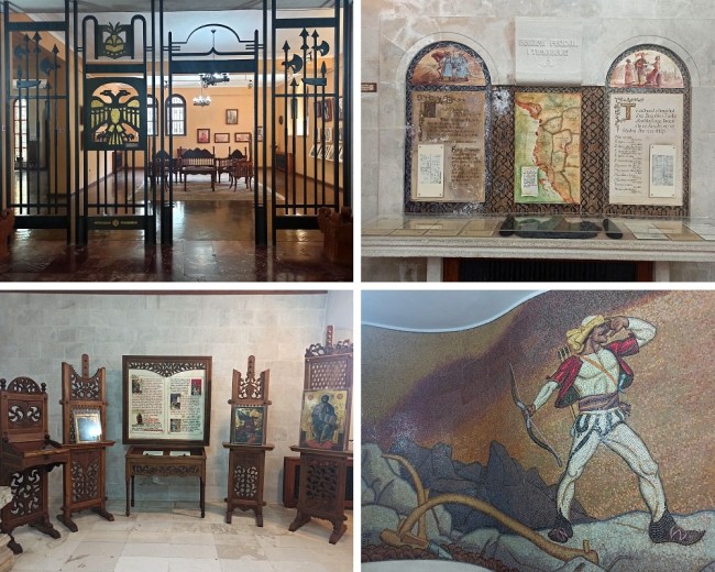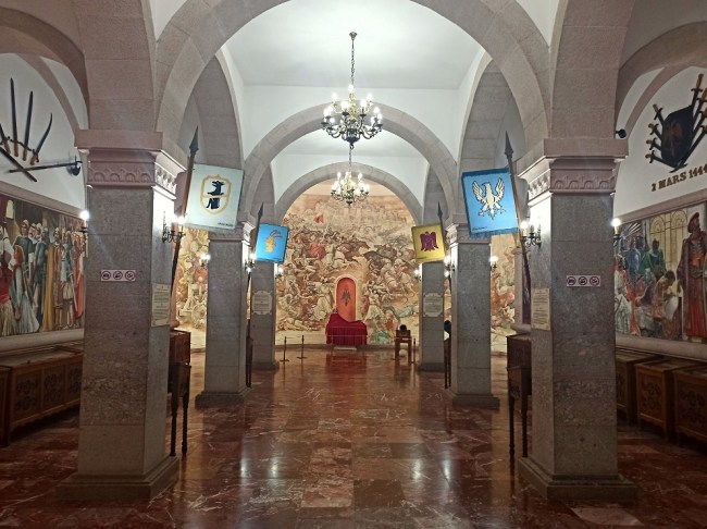 W Narodowym Muzeum Skanderberga znajdują się zgromadzone pamiątki związane z historią regionu i z samym bohaterem. Najważniejszą ozdobą są kopie miecza i hełmu Skandenberga oraz rekonstrukcja jego tronu. W środku zobaczymy także stare dokumenty i mapy, reprodukcje przedstawiające życie ludzi w XV wieku, mozaiki, ikony i rzeźby. Uwagę przykuwa makieta twierdzy z dawnych lat. W całym muzeum będą nam towarzyszyć malowidła związane z historią bohatera. Na pierwszym piętrze znajduje się taras, z którego rozpościera się niesamowity widok na miasto i okolicę.