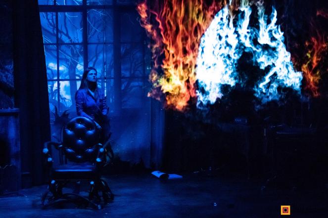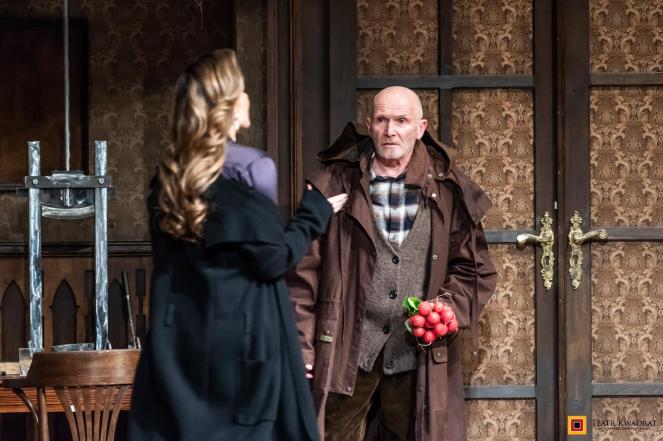 Przez dwie godziny na scenie Teatru Kwadrat możemy oglądać mrożącą krew w żyłach historię, z nagłymi zwrotami akcji, duchami, skrzypiącymi drzwiami, krwią, trupami czyli wszystkim tym co powoduję, że w trakcie oglądania tego spektaklu pojawi się gęsia skórka. Osobą odpowiedzialna za taki stan rzeczy jest Marcin Sławiński, który wyreżyserował sztukę. W rolach głównych wystąpili: Anna Karczmarczyk (Amy), Grzegorz Daukszewicz (Greg), Aleksandra Radwan (Laura) oraz Grzegorz Wons (George). Reżyserowi razem z aktorami udało się stworzyć atmosferę grozy, którą doskonale podkreślają liczne efekty specjalne, animacje oraz budząca niepokój i potęgująca napięcie muzyka Filipa Kuncewicza. Natomiast piękna scenografia Wojciecha Stefaniaka, któremu na scenie Kwadratu udało się stworzyć wspaniałe wnętrze staroświeckiego domu, zachwyca swym mrocznym klimatem.