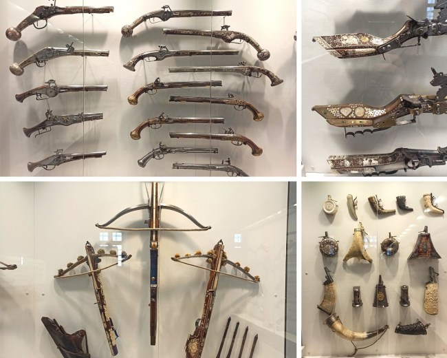 Skarbiec Koronny, pomnażany przez dary dyplomatyczne oraz zapisy władców, nie był ogólnodostępny. Pojedyncze kosztowności wyjmowano jedynie przy wyjątkowych okazjach, przede wszystkim związanych z koronacjami. Co najmniej od 1475 roku systematycznie spisywano zawartość Skarbca. Pierwszy publiczny pokaz insygniów odbył się dopiero w 1792 roku. Trzy lata później Prusacy włamali się do Skarbca, rabując jego zawartość. Ostatecznego zniszczenia insygniów koronnych dokonano w roku 1809. W Zbrojowni eksponowane są różne rodzaje broni i oporządzenia wojskowego, pochodzącego z okresu średniowiecza po wiek XVIII.