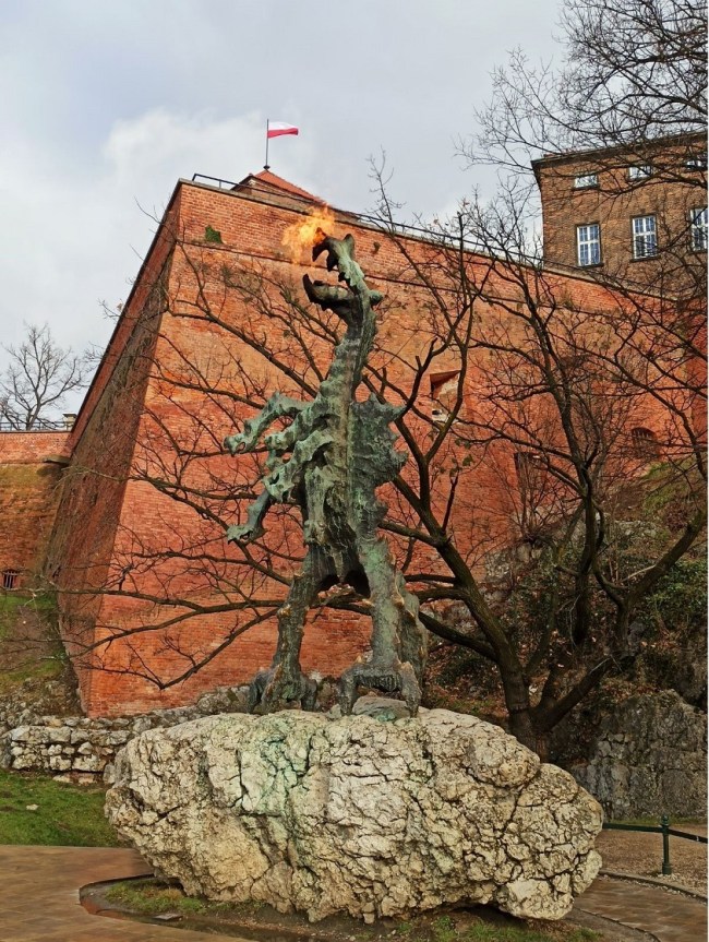 Słynna jest legenda o smoku wawelskim, według której pod wawelskim wzgórzem żył straszny smok pożerający ludzi. Jeden dzielny szewczyk Skuba pragnął zlikwidować straszydło i wymyślił niecny plan. Zabił barana, wypchał go smolą i siarką, a na koniec podrzucił smokowi. Gad po zjedzeniu „smakołyku” miał pragnienie nie do ugaszenia. Zaczął pić wodę z Wisły do momentu, aż pękł. Wielka była radość krakowian, a ze skóry zabitego smoka szewczyk wykroił wiele par butów, które do dzisiaj podobno można kupić w Sukiennicach. Smok stał się ikoną Krakowa i wawelskiego wzgórza, a jego rzeźba stoi u podnóża Wawelu i co jakiś czas zionie ogniem.