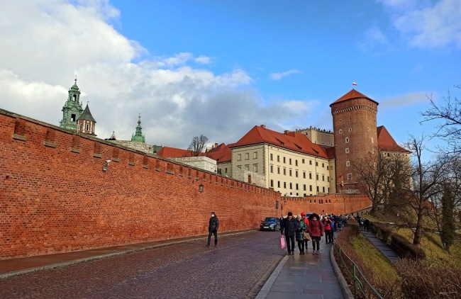 Wzgórze Wawelskie ma wysokość 238 m. n.p.m. Przed laty otoczone było licznymi rozlewiskami i bagnami. Zamek wybudowany na nim obrali sobie na rezydencję pierwsi królowie polscy: Bolesław Chrobry i Mieszko II. Od tego czasu Wawel stał się siedzibą królów, aż do przeniesienia stolicy do Warszawy w 1596 roku Obecne mury otaczające Wawel wzniesione zostały po wyburzeniu w XIX wieku średniowiecznych fortyfikacji obronnych. Na Wawel można dojść Drogą Królewską wiodącą przez Kraków od Barbakanu, ulicą Floriańską, przez Rynek Główny i Grodzką. Do Wawelu prowadzą także alejki Plant, okalających Stare Miasto.
