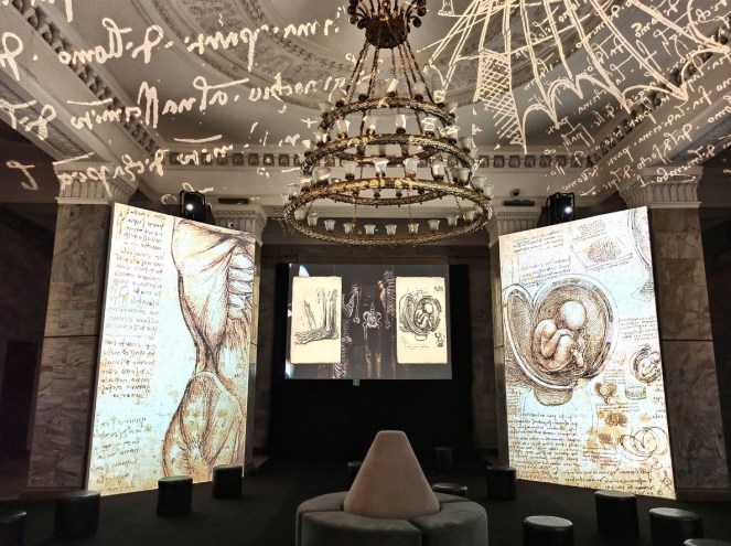 W Pałacu Kultury i Nauki na ogromnych ekranach, kolumnach i suficie przedstawione są liczne arcydzieła potwierdzające wielki talent Leonarda Da Vinci. Multimedialne obrazy wzbogacone zostaną odpowiednio dobranymi efektami wizualnymi, przestrzennym dźwiękiem, narracją lektora oraz nastrojową muzyką. Zaprezentowane zostaną dzieła: od notatek, szkiców, rzeźb po obrazy, takie jak „Ostatnia wieczerza”, „Dama z gronostajem”, „Madonna Benois”, „Madonna w Grocie” czy słynny obraz „Mona Lisa” – jeden z najbardziej zagadkowych obrazów wszechczasów. Dzięki połączeniu współczesnej technologii Digital Art 360 wraz ze sztuką, wyjątkowe detale z dzieł ożywają na oczach widzów. Będzie można szczegółowo zobaczyć i zrozumieć, że nawet 500 lat po śmierci ten genialny twórca, naukowiec, artysta i wynalazca nadal potrafi zaskakiwać.