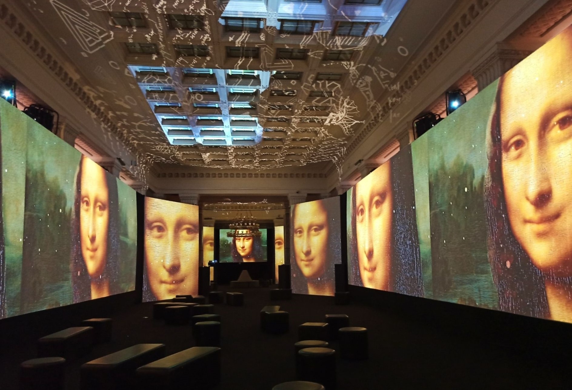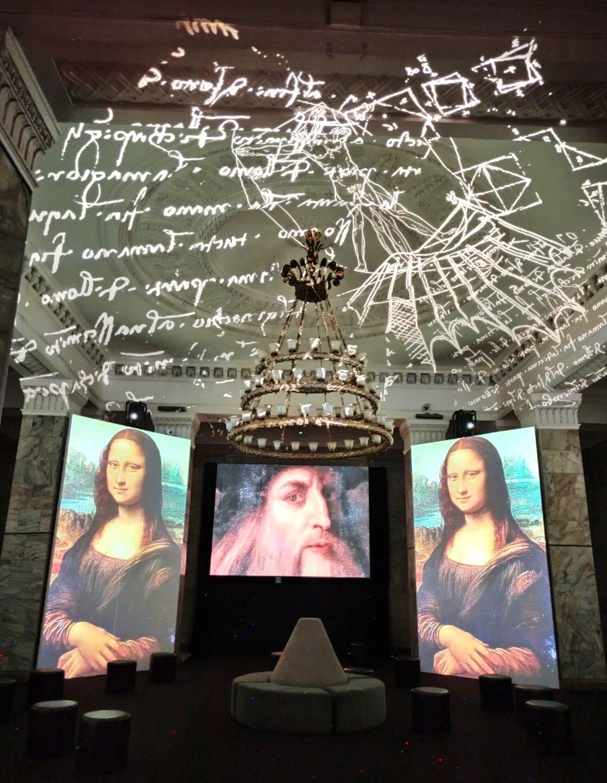 W Pałacu Kultury i Nauki na ogromnych ekranach, kolumnach i suficie przedstawione są liczne arcydzieła potwierdzające wielki talent Leonarda Da Vinci. Multimedialne obrazy wzbogacone zostaną odpowiednio dobranymi efektami wizualnymi, przestrzennym dźwiękiem, narracją lektora oraz nastrojową muzyką. Zaprezentowane zostaną dzieła: od notatek, szkiców, rzeźb po obrazy, takie jak „Ostatnia wieczerza”, „Dama z gronostajem”, „Madonna Benois”, „Madonna w Grocie” czy słynny obraz „Mona Lisa” – jeden z najbardziej zagadkowych obrazów wszechczasów. Dzięki połączeniu współczesnej technologii Digital Art 360 wraz ze sztuką, wyjątkowe detale z dzieł ożywają na oczach widzów. Będzie można szczegółowo zobaczyć i zrozumieć, że nawet 500 lat po śmierci ten genialny twórca, naukowiec, artysta i wynalazca nadal potrafi zaskakiwać.