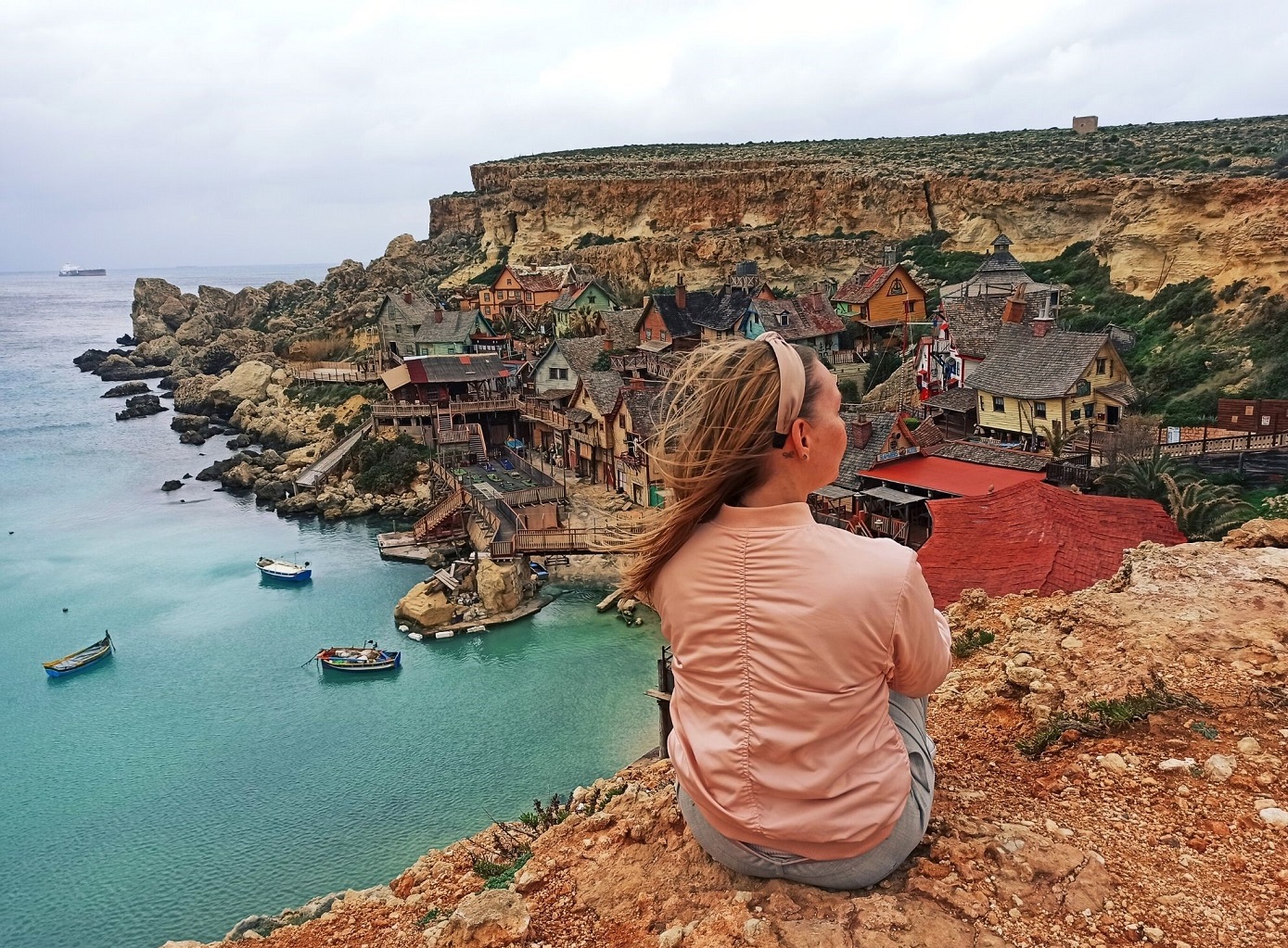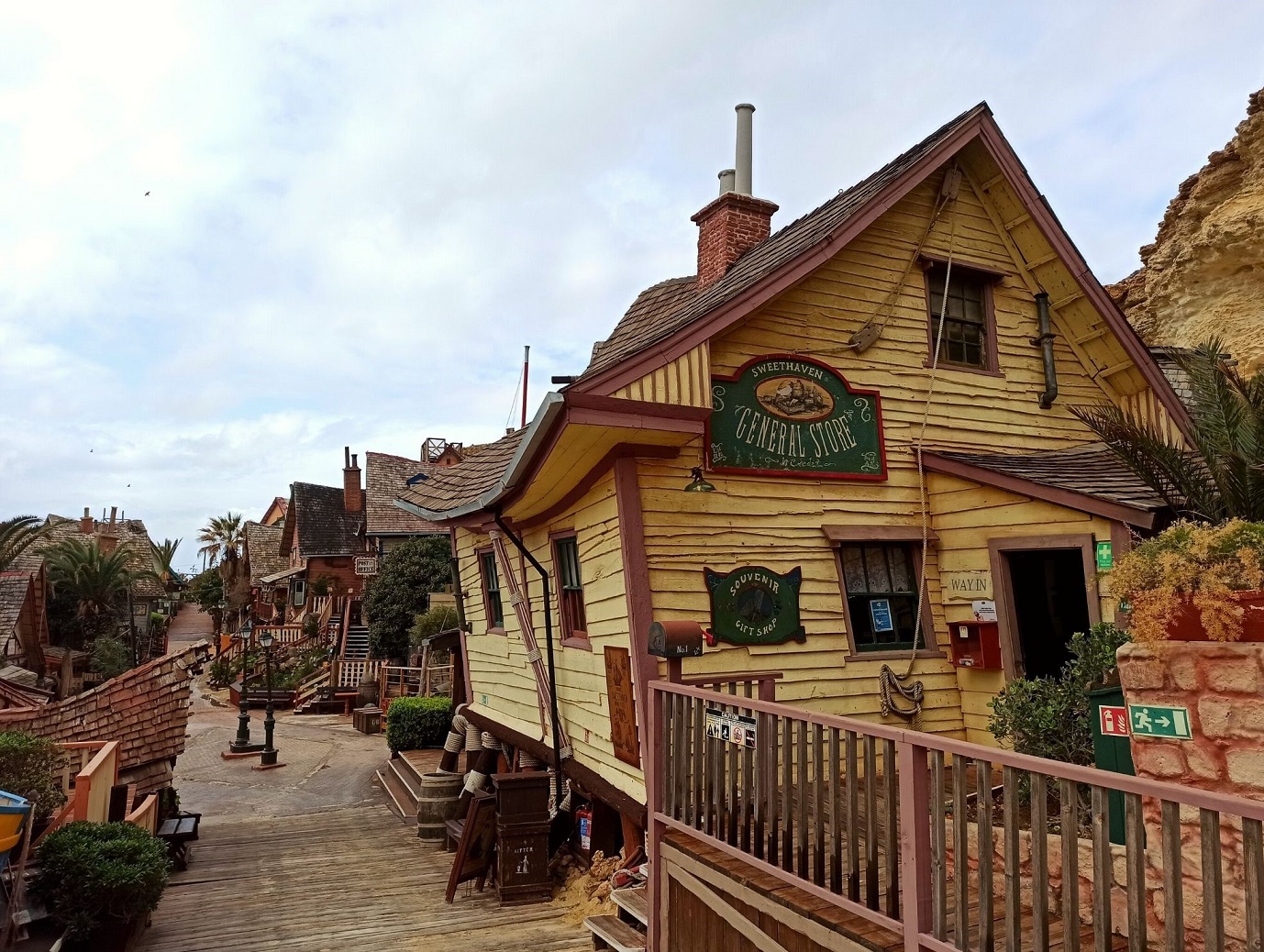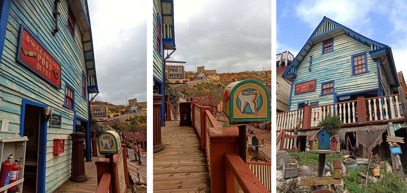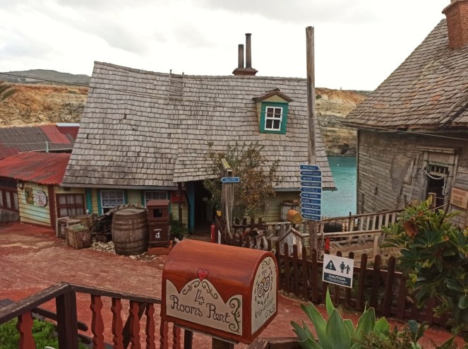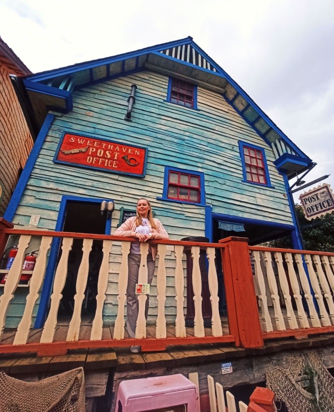 Ja do Wioski Popeye’a niestety przybyłam w sezonie zimowym i nie wszystkie atrakcje były dostępne 😦 Nie było mi dane skorzystanie z rejsu łódeczką, a jestem pewna, że widok z tej perspektywy jest niesamowity. Co więcej, spóźniłam się na plan filmowy, przez co nie wzięłam udziału w nagraniach i nie odegrałam swojej życiowej roli. Dodatkowo pogoda była kapryśna – ciemne i złowrogie deszczowe chmury zawisły nad wioską, a wiatr mało co nie urwał głowy. Mimo wszystko – bawiłam się wybornie 🙂