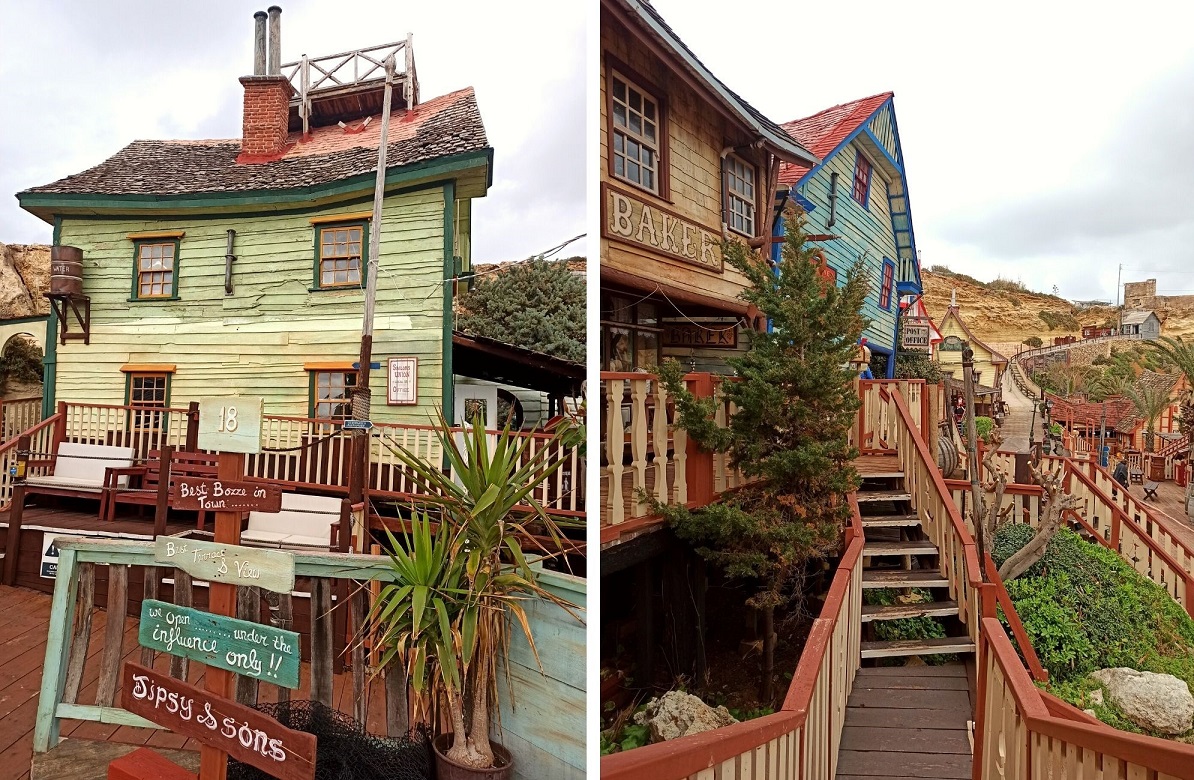 Wiele osób rezygnuje z tej atrakcji, uważając, że bilet wstępu jest drogi, a w środku Wioski Popeye’a nie ma za wiele atrakcji. Słyszałam też opinie, że wioska jest tandetna i kiczowata, że nie warto wydawać pieniędzy na tego typu atrakcję. Wielu nawet w niej nie było, a jedynie przyjechali do zatoki i udali się na punkt widokowy, by zobaczyć wioskę, po czym stwierdza, że nie warto i koniec. Jak wiadomo, o gustach się nie dyskutuje – kto co lubi. Ja od początku wiedziałam, że Popeye Village jest moim celem w trakcie wizyty na Malcie. Pojechałam tam trochę z sentymentu do sympatycznej postaci marynarza, a trochę dlatego, że najzwyczajniej na świecie lubię takie miejsca 🙂 I chociaż już od dawna nie jestem małą dziewczynką, ślepo zapatrzoną w Popeye’a, to i tak świetnie się tam bawiłam. To taki trochę powrót do dzieciństwa, kiedy zasiadałam z tatą przed telewizor (zaraz po tym jak ustawił satelitę na wybrany kanał). Bilet wstępu może faktycznie nie jest najtańszy, ale zdecydowanie warto wydać te pieniądze i zajrzeć do środka. Z jednej strony dość komercyjne miejsce, a z drugiej naprawdę jedyne w swoim rodzaju. Z całą pewnością Wioska Popeye’a jest bardzo fotogeniczna, a na tle lazurowej zatoki oraz otaczającej ją klifów robi niesamowite wrażenie.