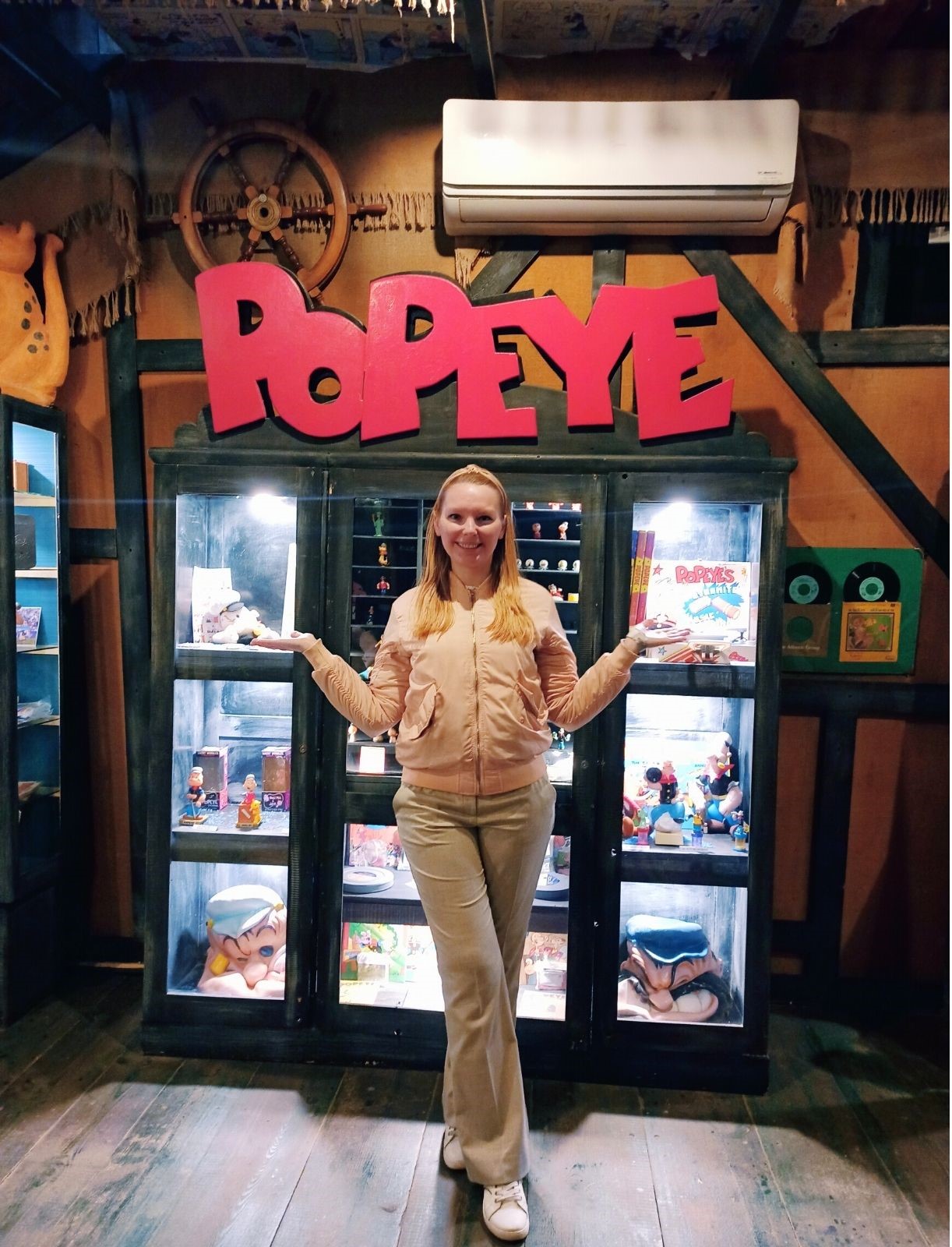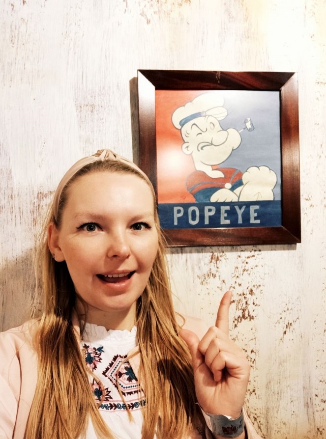 Jako kilkuletnia dziewczynka razem z tatą zasiadałam przed telewizorem, by oglądać przygody szalonego marynarza o imieniu Popeye. Wtedy jeszcze ta kreskówka nie była dostępna w polskiej wersji językowej, a żeby ją oglądać trzeba było ustawiać satelitę na zagraniczny odbiór. Kilkuletnia ja, pomimo że wtedy nie rozumiałam ani słowa po angielsku, z wypiekami na twarzy śledziłam każdy ruch umięśnionego i wytatuowanego marynarza, który zyskiwał supermoce po wciągnięciu przez fajkę puszki szpinaku. I chociaż wtedy nie polubiłam tego zielonego warzywa, to w tamtym czasie Popeye był dla mnie swego rodzaju superbohaterem – do momentu, w którym odkryłam Batmana 🙂 Dwadzieścia kilka lat później dotarłam do wioski, w której urzęduje nie tylko sam Popeye, ale również jego ukochana Olive Oyl oraz jego przeciwnik Bluto.