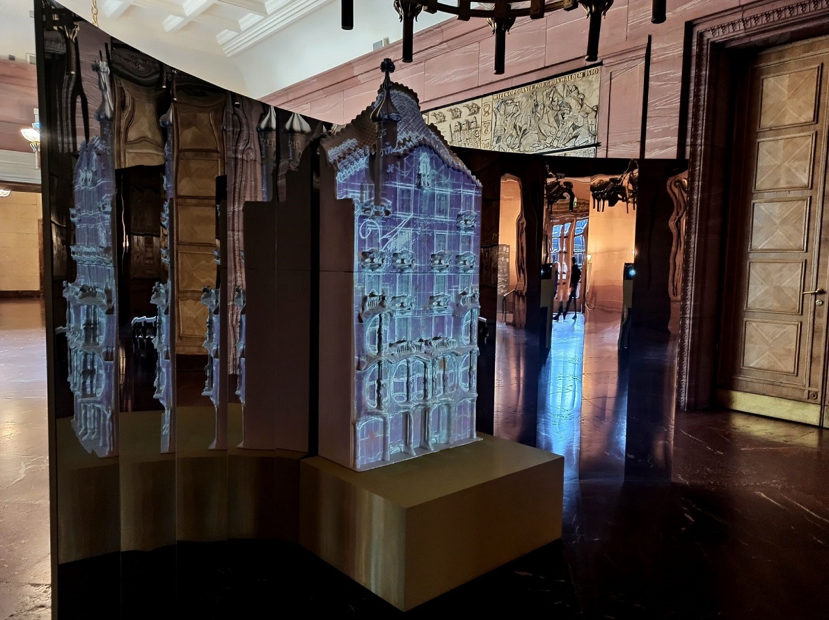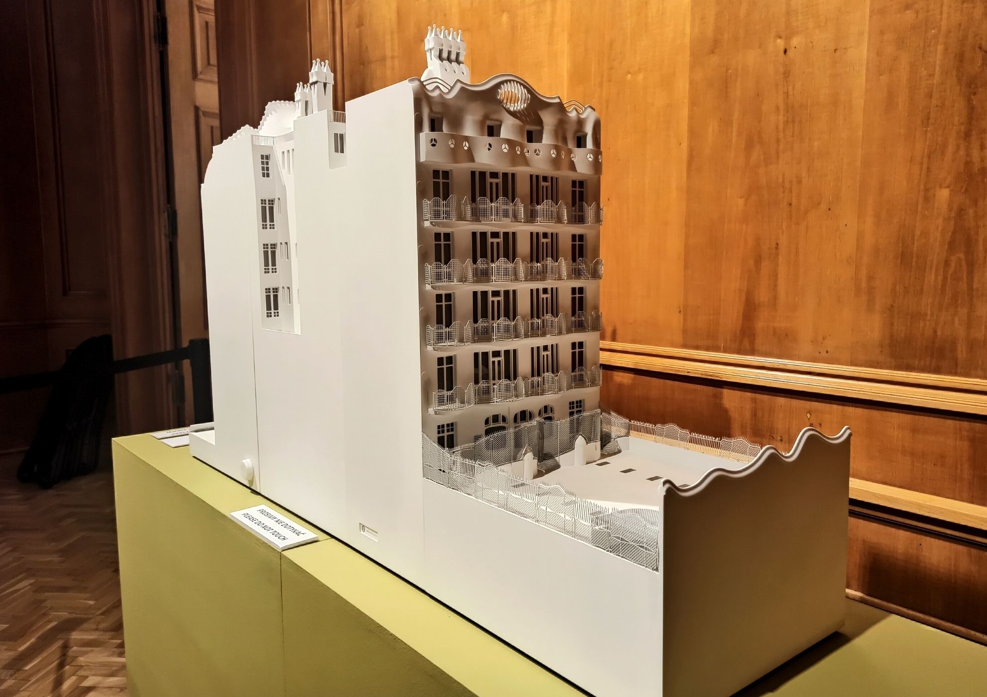 W Pokoju Marmurkowym można się przyjrzeć dużej makiecie Casa Milà – ostatniej kamienicy zaprojektowanej przez Gaudíego. W tej mniejszej, łatwiejszej do objęcia wzrokiem skali widać rzeźbiarski rozmach i śmiałość całościowej wizji artysty. - Hol przed Salą Kominkową