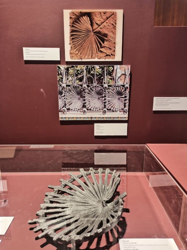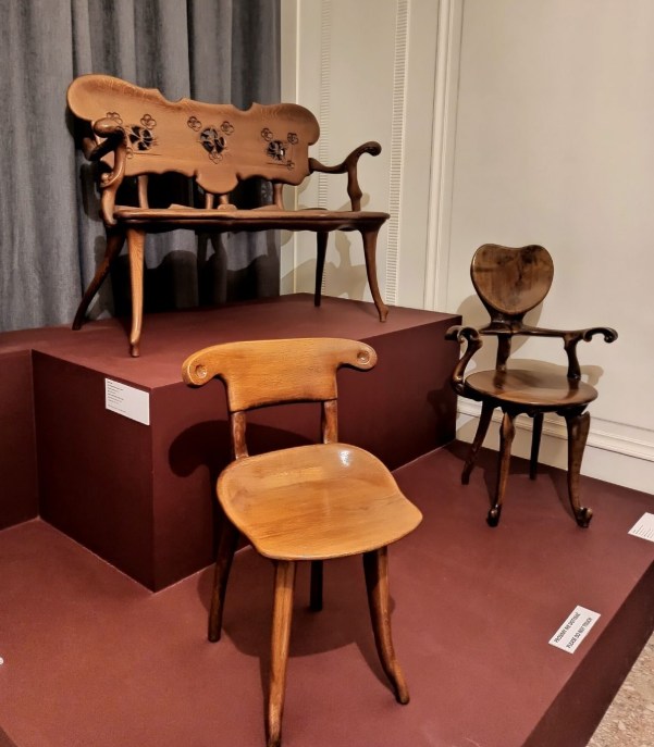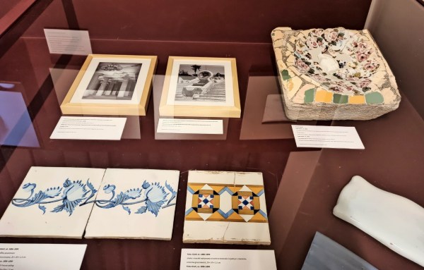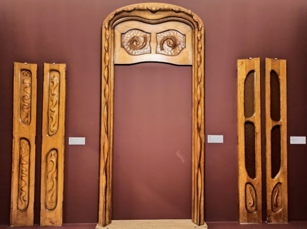 Elementy wyposażenia, takie jak drzwi, krzesła, płytki ceramiczne, fragment parkietu i klamki, zaprojektowane przez Gaudíego, dają wyobrażenie dbałości artysty o detal i konsekwencji w łaczeniu funkcjonalności oraz piękna przedmiotów. - Sala Kominkowa
