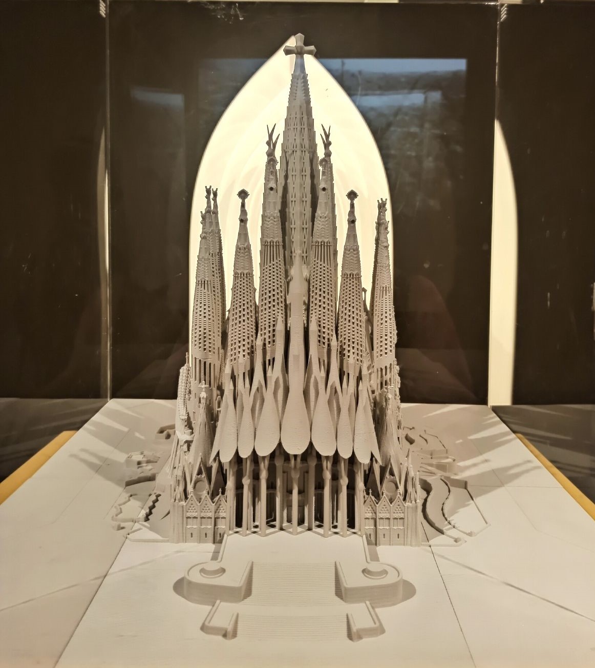W Sali Wystaw można obejrzeć modele, rysunki i zdjęcia wizytówki Barcelony – świątyni Sagrada Família, budowanej od 1882 roku (ciągle nieukończonej). Obiekty te pozwalają zapoznać się zarówno z wizją Gaudíego, jak i współczesną formą tego spektakularnego budynku. - Hol Kolumnowy