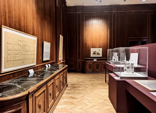 Dzięki planom i fotografiom można prześledzić rozwój artystyczny Gaudíego od Casa Vincens przez Casa Calvet i Casa Batlló aż do szczytowych osiągnięć architektonicznych i rzeźbiarskich Casa Milà. - Pokój Marmurkowy