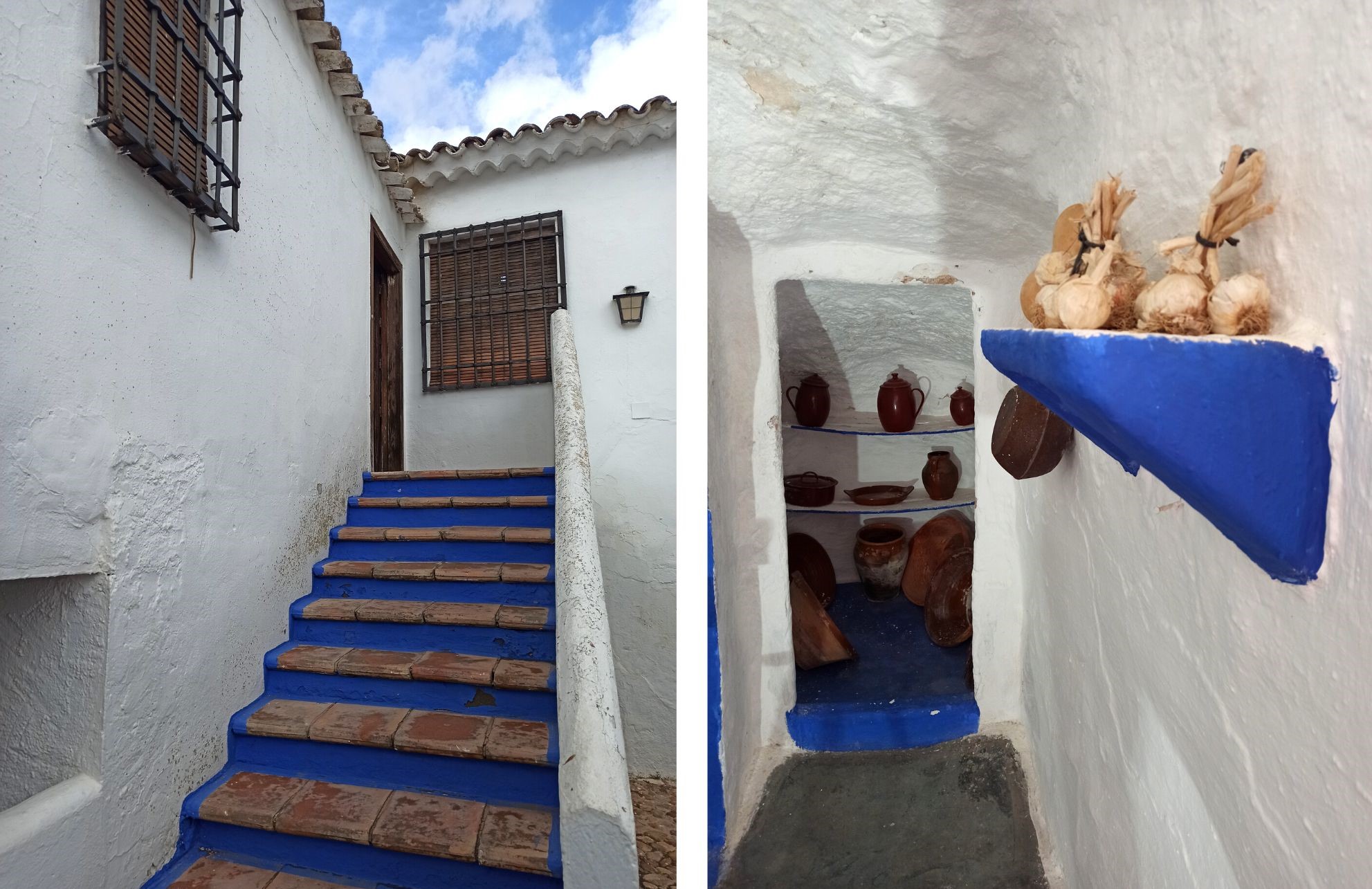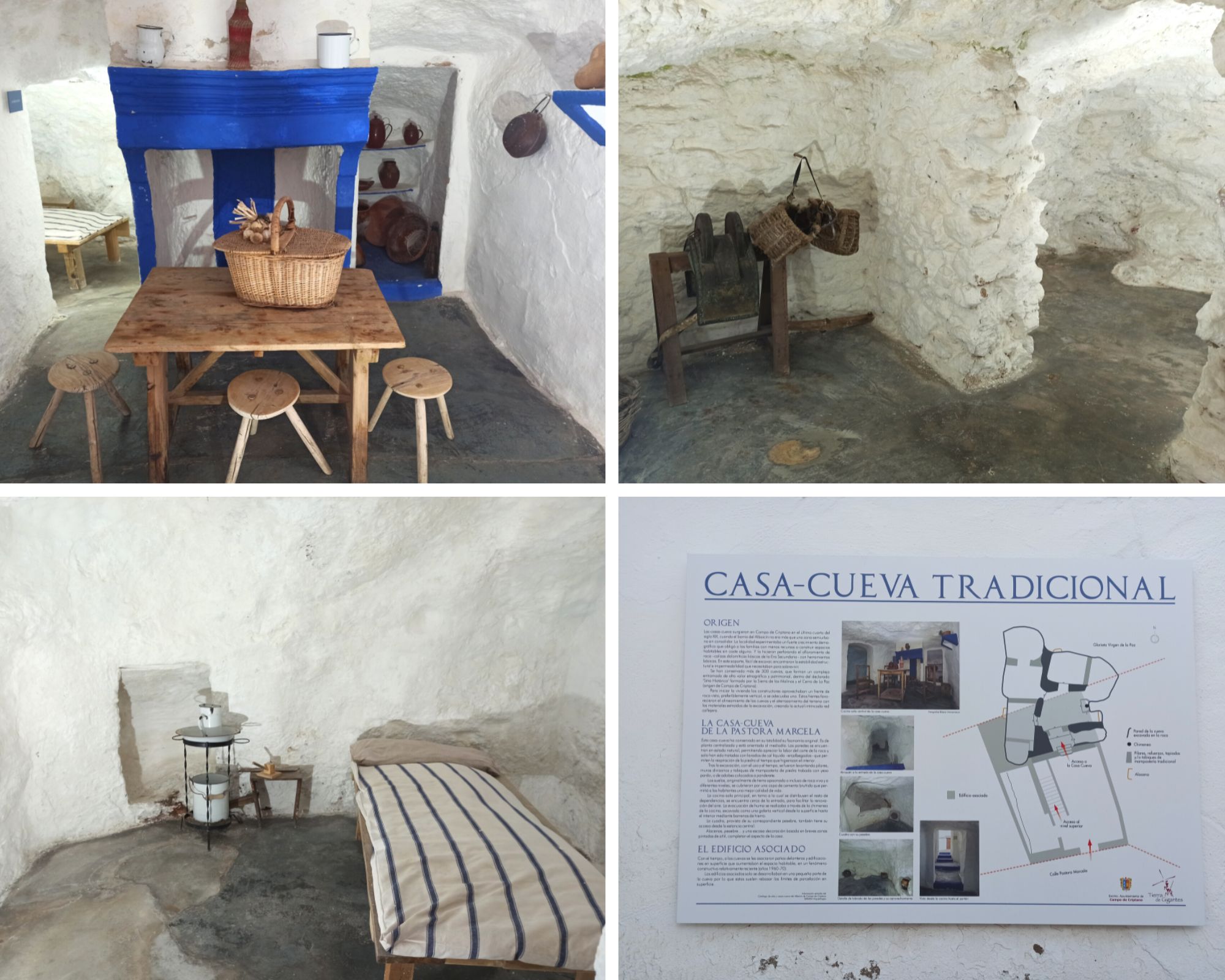 W dzielnicy Albaicin znajdują się inne niezwykłe domki –  jaskinie, które były zamieszkiwane przez ludzi. Domy nie przez przypadek zostały wydrążone w skale – ze względu na gorący klimat latem, w podziemnych mieszkaniach było po prostu chłodniej. Konstrukcja takiego budynku jest wykonana z ubitej ziemi, a jego dach jest pochylony z zakrzywionych płytek na drewnianej konstrukcji. Fasada składa się z bielonych ścian z cokołem i ościeżnic w kolorze indygo. Niektóre z tych domów stanowiły także magazyny zboża, który później był mielony w wiatrakach. Generalnie pod jednym dachem mieszkały również zwierzęta, jak krowy czy świnie. W całym miasteczku jest kilka tego typu domów, ale jeden z nich przekształcono na muzeum. Ich powstanie datuje się na XVI wiek. Do pomieszczeń można wejść i poobserwować, jak kiedyś żyli mieszkańcy Campo de Criptana. Domki są malutkie i niskie – musiałam się schylić, żeby nie przywalić głową w sufit.