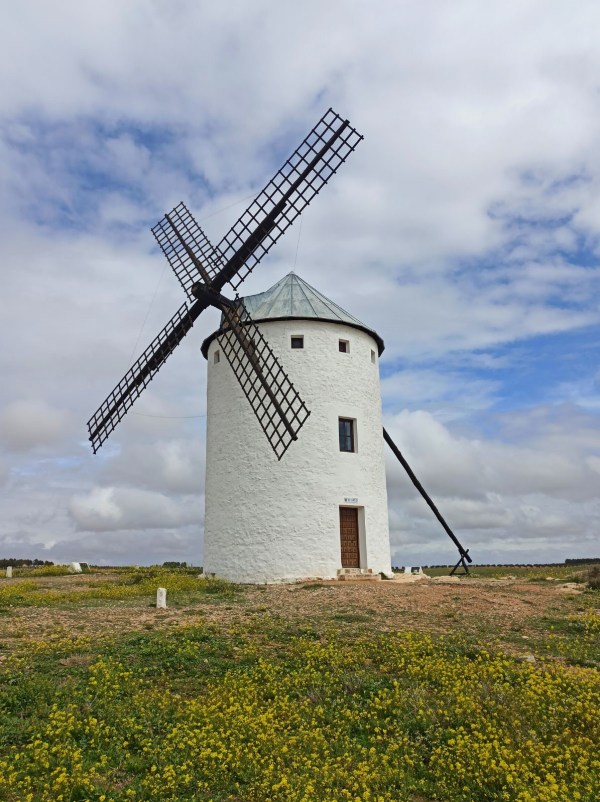 Młyny w La Mancha są typu „wieżowego”, zbudowane z kamienia i bielone wapnem. Mają okrągłą budowę z małymi okienkami, wskazuje kierunek wiatru, która wskazuje, gdzie należy obrócić stożkową osłonę, aby jej łopatki korzystały z wiatru w dogodnym dla nich czasie. Posiadają trzy kondygnacje: górną z kamieniami szlifierskimi oraz dolną do przechowywania i pakowania zmielonego zboża.