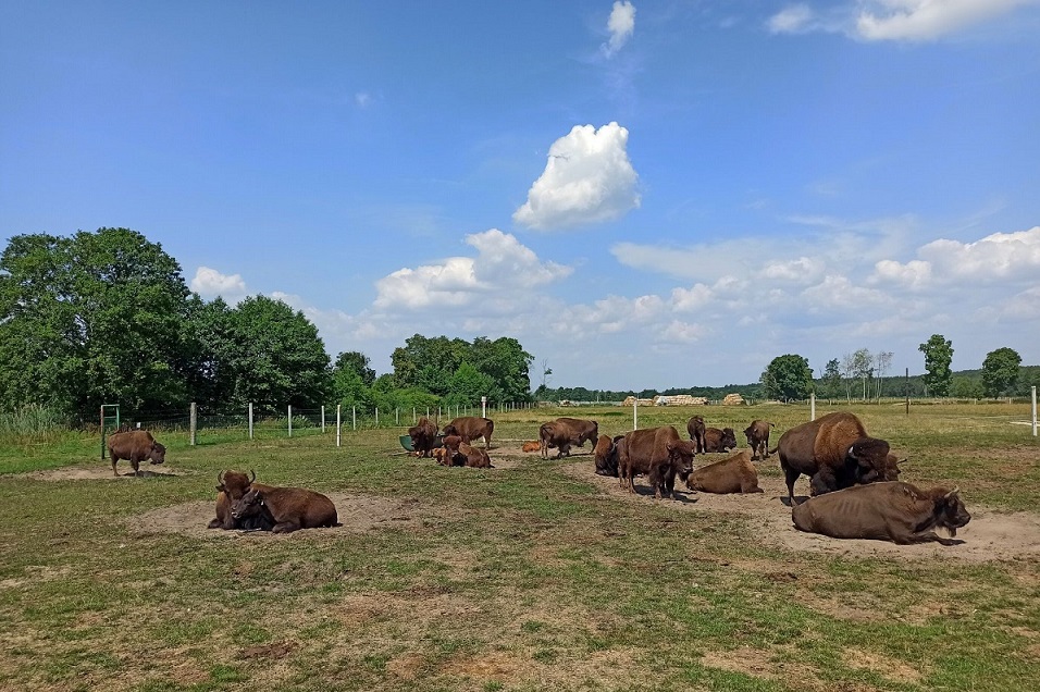 Stado zamieszkałych tam bizonów amerykańskich można obserwować w naturalnych warunkach, ale i jednocześnie historycznym otoczeniu – wjeżdżając do wnętrza zagrody westernowym wozem „safari-bizon”. Przez cały czas jest z turystami przewodnik, który opowiada historii zwierząt, sypie zabawnymi anegdotami z nimi związanymi i cierpliwie odpowiada na pytania gości. Stado zaaklimatyzowało się na tym terenie bez problemów. Od założenia hodowli do chwili obecnej stado liczy ponad 60 sztuk młodych i z każdym rokiem pojawiają się kolejne. Małe, słodkie bizonki o jasnej sierści oglądać można co roku mniej więcej od maja. W sumie w kurozwęckiej zagrodzie znajduje się około 80 osobników.