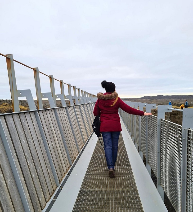 To most liczący 15 m zawieszony wśród pól lawowych, który wybudowany został nad pokrytą piaskiem szczeliną ryftową pomiędzy płytami tektonicznymi północnoamerykańską i euroazjatycką. Jednym zdaniem – to tutaj stykają się dwie płyty tektoniczne dwóch kontynentów, po których możemy chodzić! W efekcie dryfu kontynentalnego powstała szczelina liczy kilkanaście metrów szerokości i wciąż się poszerza z prędkością 2,5 cm rocznie. Islandia jest jedynym miejscem, gdzie zjawisko to zachodzi na powierzchni ziemi. Most nazywany również „Mostem między kontynentami” stanowi symbol połączenia dwóch kontynentów: Europy i Ameryki Północnej, nowego i starego świata.