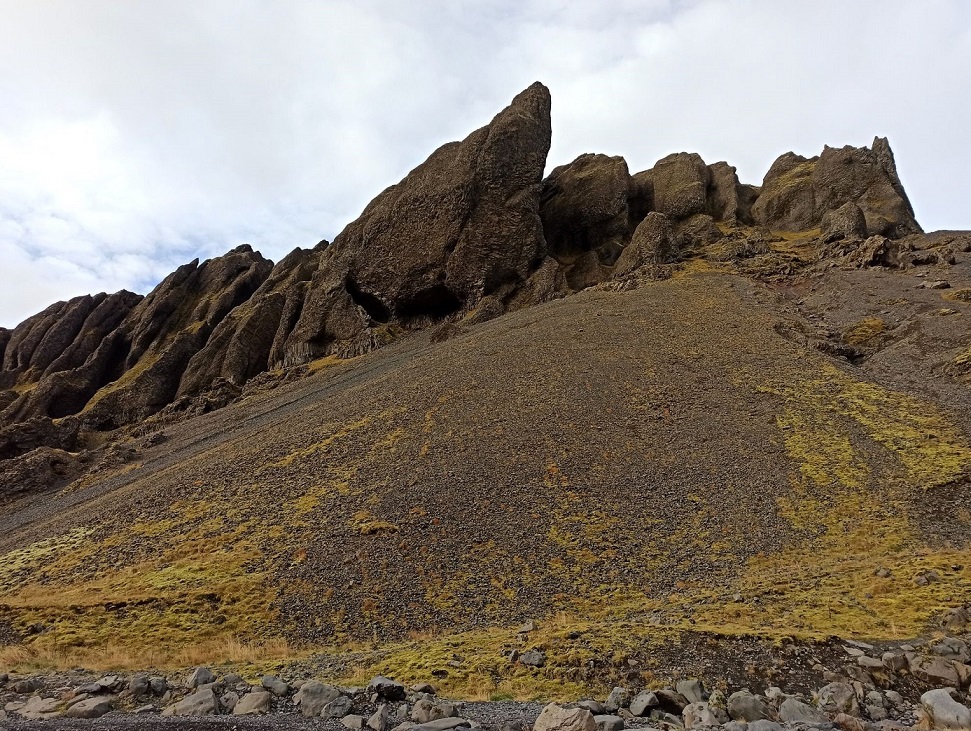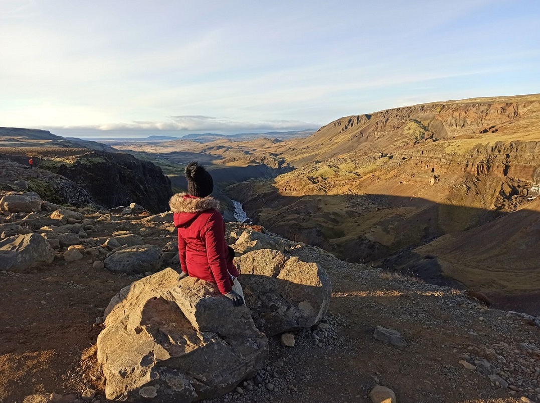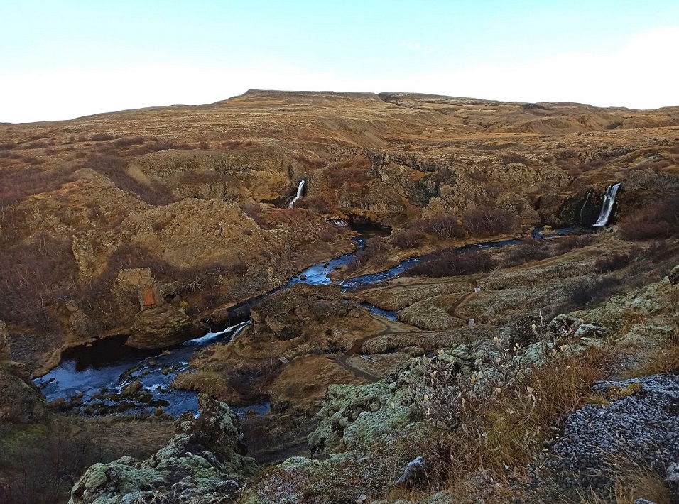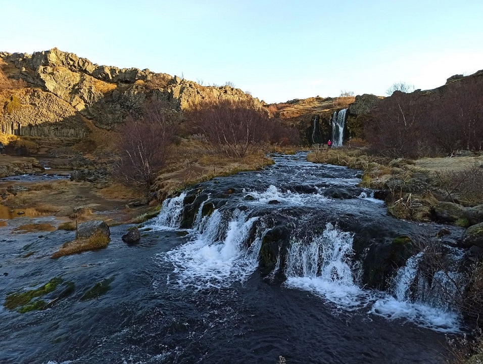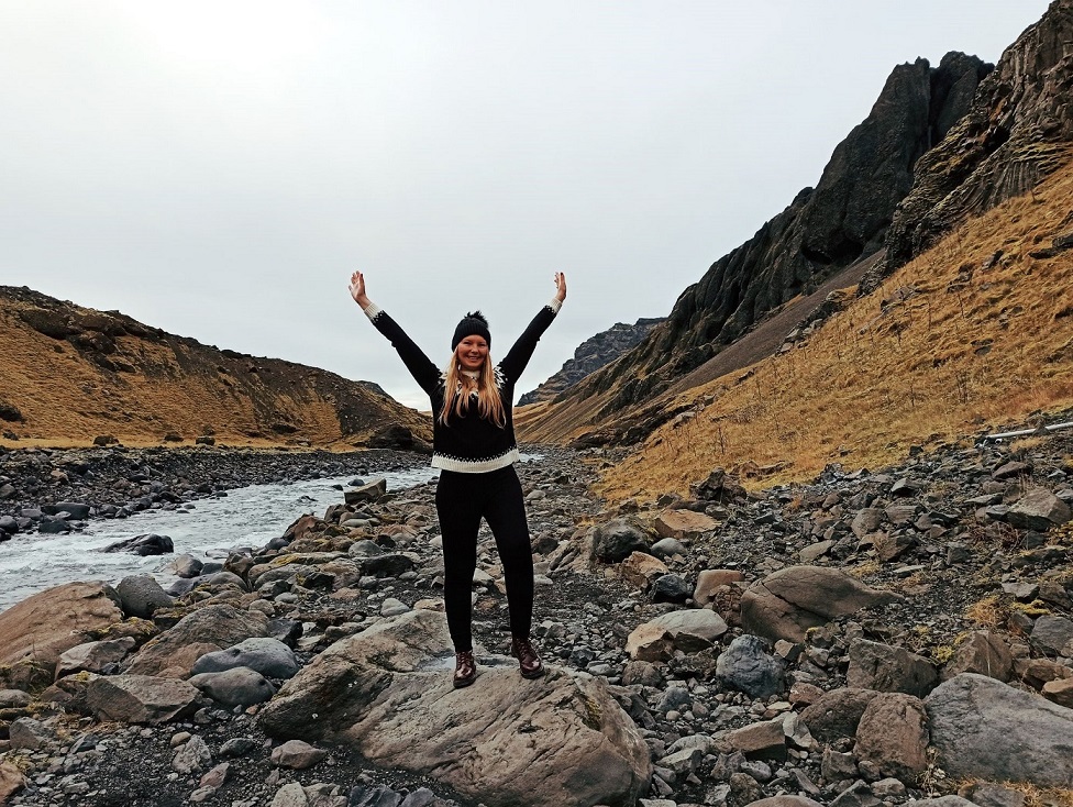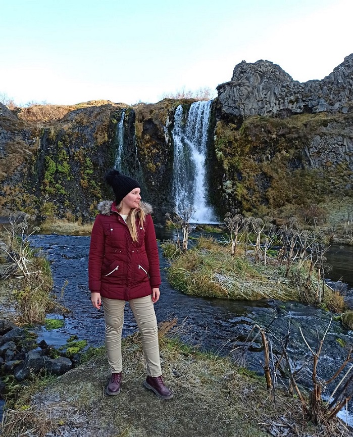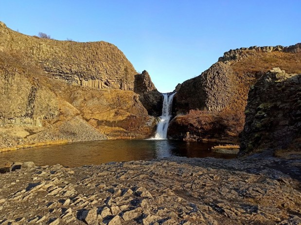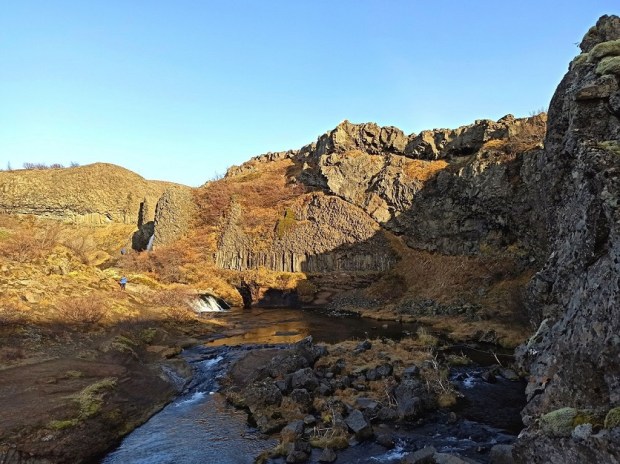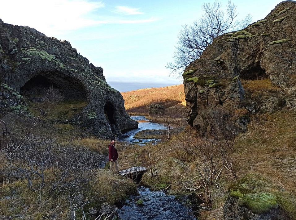 Dolinkę Gjáin nazwałam sobie doliną elfów, bo gdybym była elfem, to właśnie tutaj bym zamieszkała 🙂 Chociaż niestety nie udało mi się spotkać mojego Legolasa, to i tak było magicznie 😉 🤣 To malownicza dolinka z licznymi wodospadami, krystalicznymi jeziorami i formacjami skalnymi. Wyraźnie rzuca się w oczy wulkaniczne pochodzenie okolicy. Widać bazaltowe słupy oraz ślady eksplozji po spotkaniu ognia i wody, wynikiem której powstały skalne przypominające m.in. ruiny zamku. Dolinka jest dobrze ukryta – staje się widoczna dopiero w momencie zbliżania się do krawędzi doliny. Gjáin to taka oaza, w której zaznamy ukojenia i – jeśli mamy farta – spotkamy jakiegoś elfa 😀