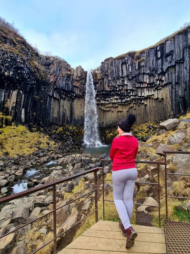 Jeden z najbardziej malowniczo położonych wodospadów w Islandii, które miałam okazje zobaczyć. Otoczony jest uformowanymi z lawy charakterystycznymi ciemnymi sześciobocznymi bazaltowymi kolumnami, od których barwy wywodzi się jego nazwa – Svartifoss (Czarny Wodospad). Woda spada tu jedynie z 20 metrów, jednak tym co przyciąga turystów jest jego niesamowite otoczenie. Do wodospadu trzeba się nieco wspiąć i napocić po drodze, ale zapewniam, że widok tej kaskady wynagrodzi nam wszelkie trudy trasy 🙂 Co ciekawe, naturalne bazaltowe kolumny otaczające Svartifoss stały się inspiracją dla architekta Guðjóna Samúelssona przy projektowaniu fasady słynnego kościoła Hallgrímskirkja w Rejkiawiku.