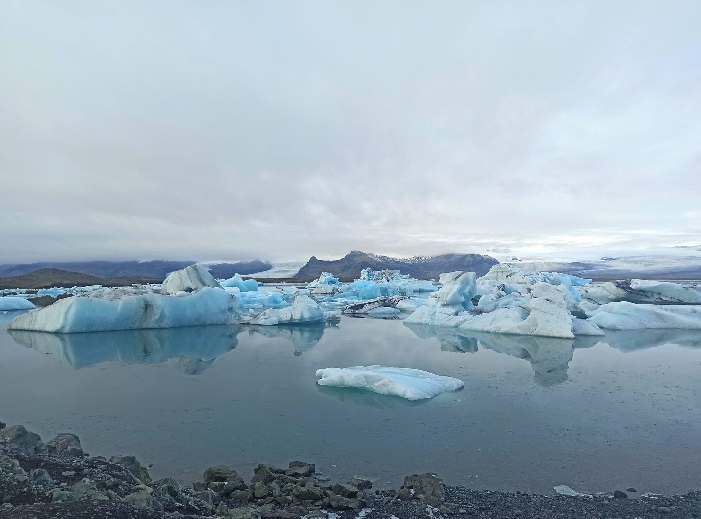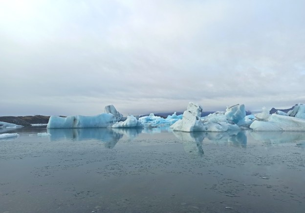 Absolutny number 1. Stałam jak zahipnotyzowana, gapiąc się na te wielkie góry lodu. Kiedy już się ocknęłam i zebrałam swoją szczękę z ziemi, ruszyłam na spacer brzegiem laguny. Biel przeplatająca się z błękitem w połączeniu z czarnym piaskiem robią piorunujące wrażenie. Niezwykłość Laguny Jokulsarlon polega na tym, że od lodowca odrywają się jego niewielkie fragmenty i jako góry lodowe spływają po zatoce do otwartego oceanu. W związku z tym, że przesmyk z zatoki do oceanu jest jednak wąski, a przepływ wody powolny, góry lodowe dość gęsto gromadzą się w zatoce, co widać na poniższych zdjęciach.