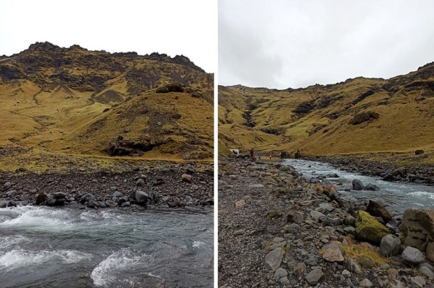 Drugi z nich jest dobrze ukryty, ale nie mniej urokliwy. Gljúfrabúi umiejscowiony jest dosłownie 500 m dalej, jakieś10 minut spaceru. Wejście niewielkiego kanionu, w którym się ukrył wymaga od nas trochę zwinności, ponieważ jedyna droga prowadzi przez kamienie wystające w strumieniu płynącej rzeki, a więc jest mokro (bardzo!) i ślisko. Wiele osób go pomija, pewnie dlatego, że jest schowany pośród skał, a droga do niego jest nieco wymagająca. Według mnie warto się do niego przespacerować, bo efekt jest niesamowity 🙂
