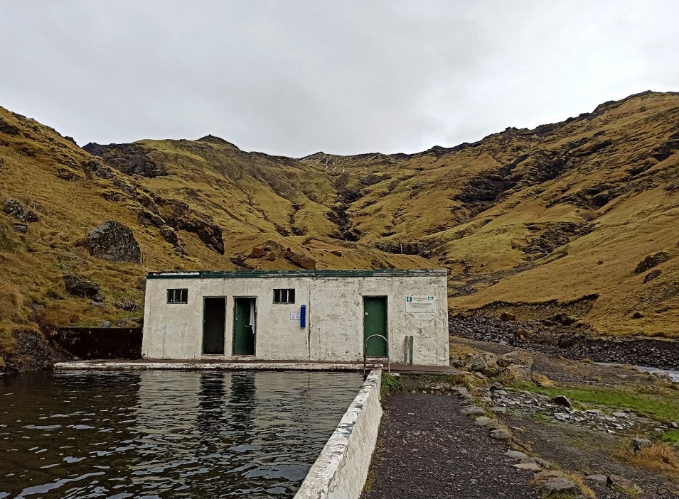 To jeden z najstarszych basenów na Islandii znajdujący się… pośrodku niczego 🙂 Powstał w 1923 roku, ma 10 metrów szerokości i 25 metrów długości, a do 1936 roku stanowił największy basen w kraju. Chociaż zbudowany przez człowieka, to aktualnie funkcjonuje w sposób charakterystyczny dla dzikich, naturalnych gorących źródeł na Islandii – dostępny jest za darmo, nie zatrudnia ratowników i nie zapewnia żadnych środków bezpieczeństwa. Wchodzi się do niego na własną odpowiedzialność. Warto do niego podejść, bo otoczenie jest naprawdę malownicze i dostarczy nam naprawdę unikalnych wrażeń. Wygląda jak jakiś post-apokaliptyczny relikt po wymarłej cywilizacji albo minionej epoce.