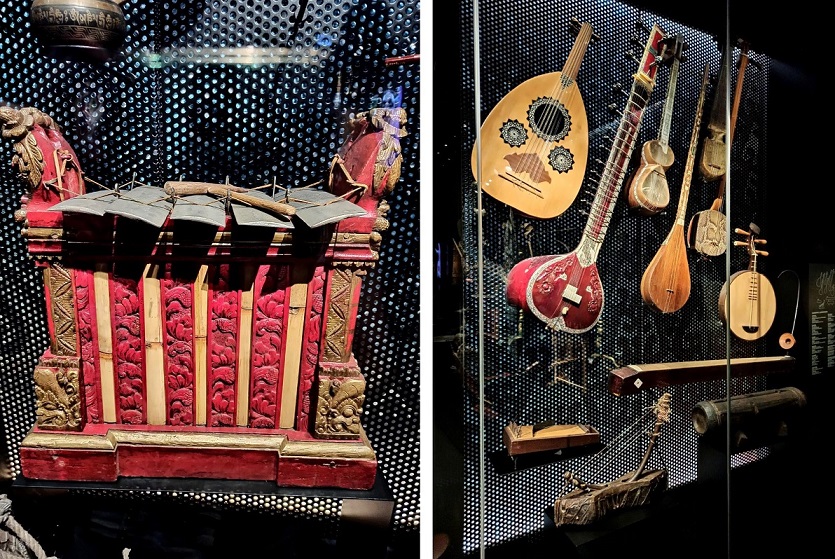 Naszą egzotyczna podróż kończymy „Strefie dźwięków” ze 120 instrumentami muzycznymi pochodzącymi z różnych obszarów kulturowych i krajów Azji. Możemy tam obejrzeć nie tylko przepiękne obiekty z muzealnej kolekcji, lecz także posłuchać brzmienia wybranych instrumentów, obejrzeć filmy prezentujące techniki gry na nich oraz zapoznać się ze współczesną i historyczną dokumentacją fotograficzną muzycznych tradycji.