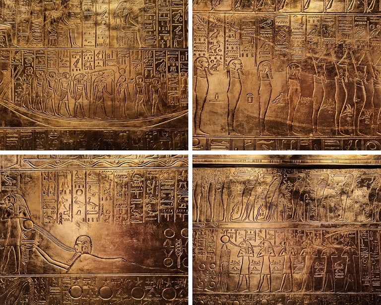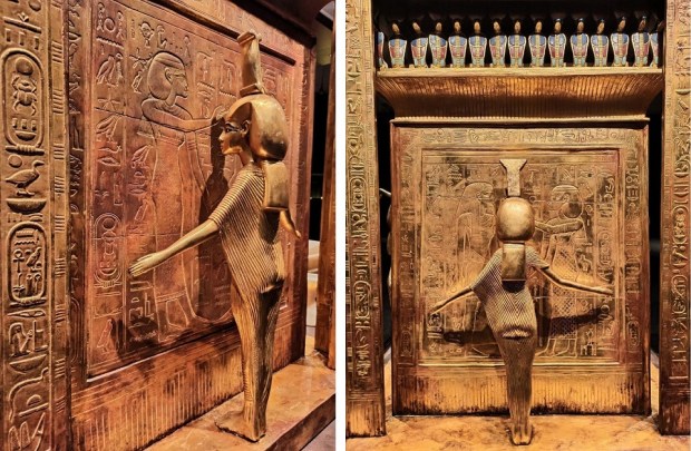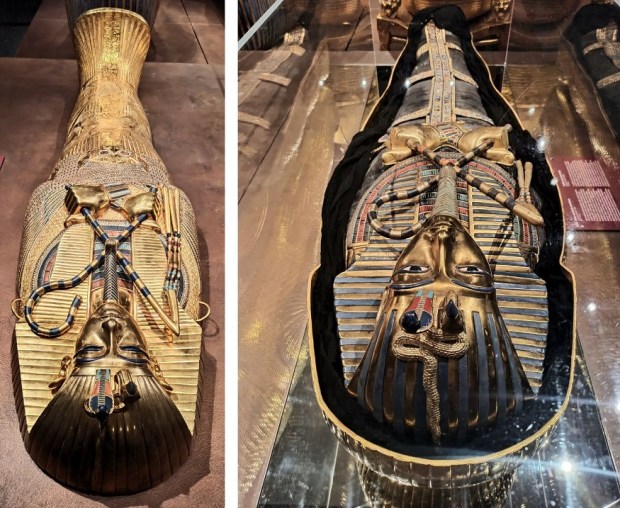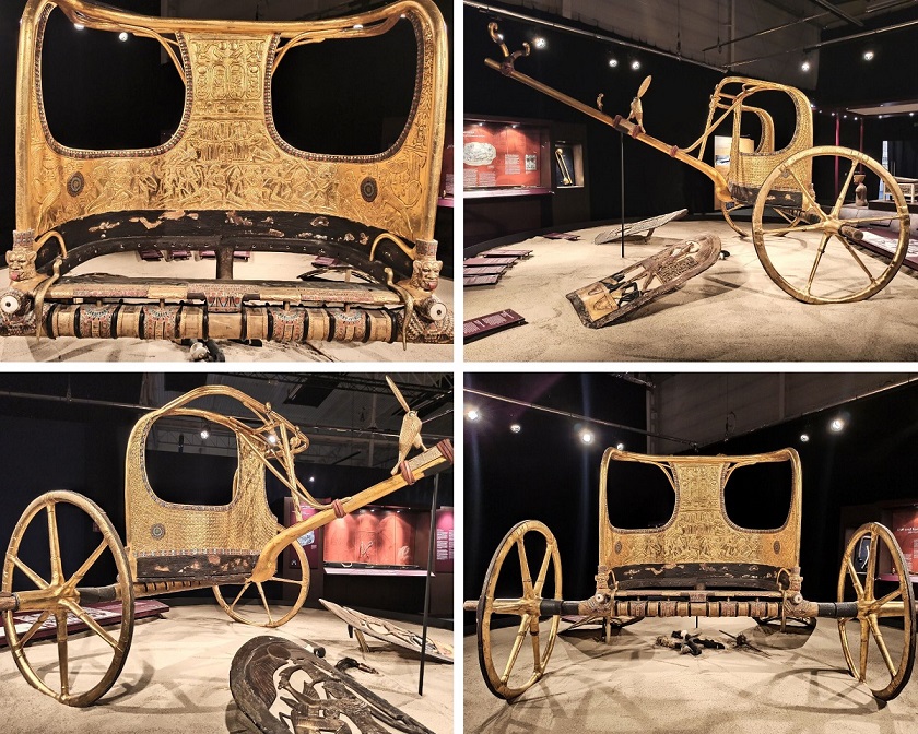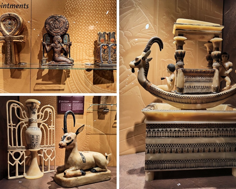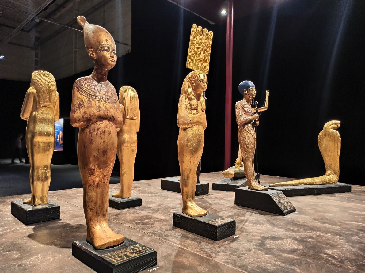 Wszystkie eksponaty to repliki. Chociaż z archeologicznego punktu widzenia są to falsyfikaty, to przyznaję, że wykonane są genialnie! Doskonale odwzorowanie oryginałów, dbałość o każdy detal i staranność wykonania aż bije po oczach. Wszystkie eksponaty zostały wykonane w tradycyjny sposób, z wykorzystaniem tradycji rzemieślniczej sprzed tysięcy lat, pod ścisłym nadzorem światowych egiptologów oraz przy pomocy najnowocześniejszych technologii stworzono doskonałe repliki wszystkich znalezisk, dzięki temu skarby grobowca można z bliska i co najważniejsze – zebrane w jednym miejscu, podziwiać na całym świecie. Trudno odróżnić replikę od oryginału. Osoby, które pracowały przy ich odtwarzaniu są prawdziwymi artystami! Faktycznie możemy poczuć się jak w grobowcu faraona 🙂