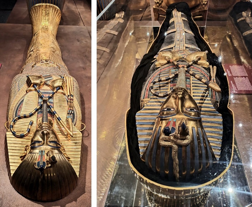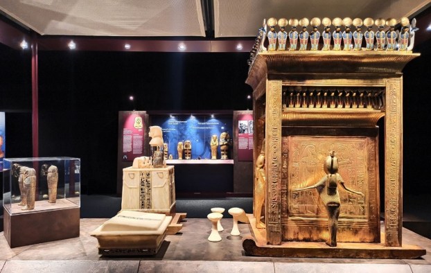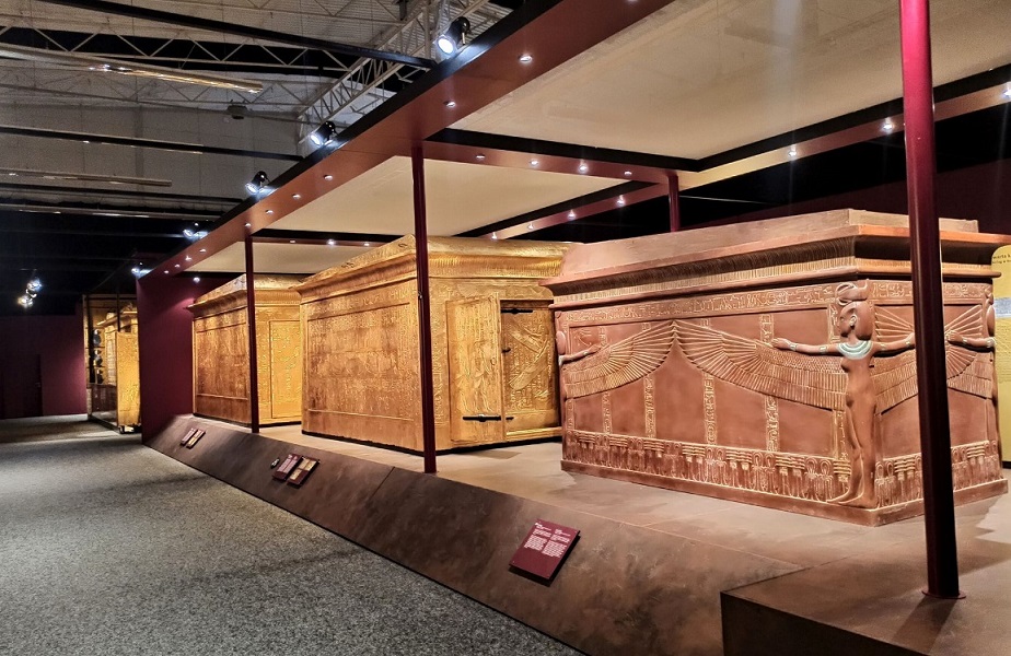 Wystawa Tutanchamon – grobowiec i skarby jest urządzona dokładnie tak, jak grobowiec został odkryty 100 lat temu. Wszystkie święte przedmioty, statuetki, klejnoty i sarkofagi leżą w tych samych miejscach, w których zostały kiedyś znalezione. Zwiedzający mają okazję zobaczyć ponad 1000 wspaniałych przedmiotów, w tym znaną na całym świecie złotą maskę pośmiertną Tutenchamona i jego oszałamiający pozłacany sarkofag.