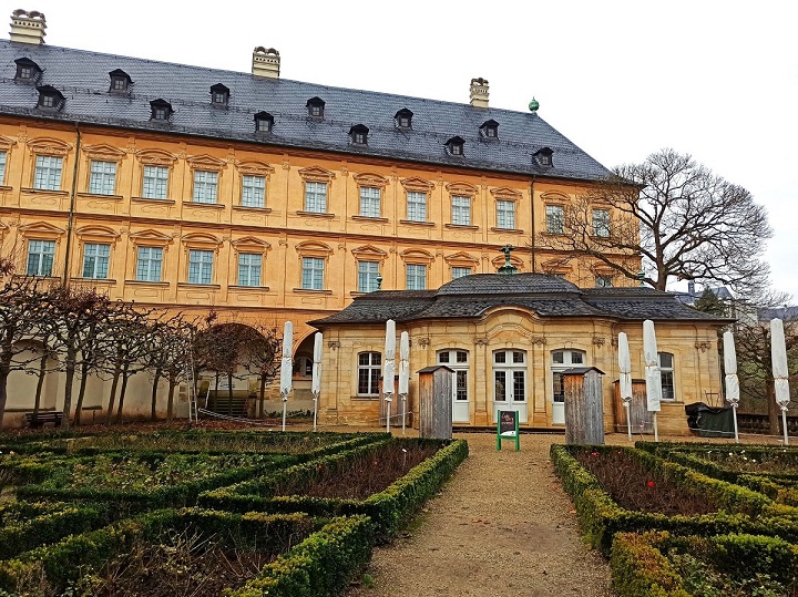Za Nową Rezydencją Biskupią kryje się prawdziwa perełka – ogród różany. Na obszarze ogrodu, liczącym 3500 metrów kwadratowych znajduje się około 4500 róż z 48 odmianami tego gatunku. Aktualny układ ogrodu to efekt przebudowy w 1733 roku nadzorowanej przez architekta Balthasara Neumanna. Ten barokowy ogród, który poza kwiatami, mitologicznymi rzeźbami i perfekcyjnym układem zachęca również widokiem z tarasów na okoliczną panoramę miasta. Co prawda ja byłam tam w okresie zimowym, więc nie było takiego wrażenia, jakie ogród robi wiosną, gdy kwitną wszystkie kwiaty. Nie mniej jednak ogród i tak zrobił na mnie duże wrażenie.