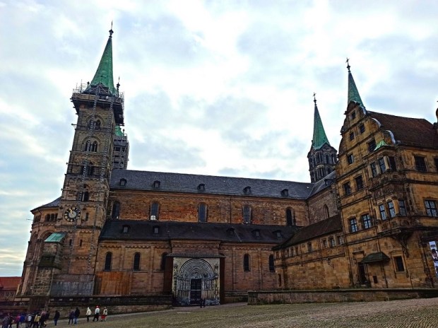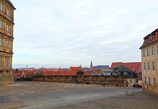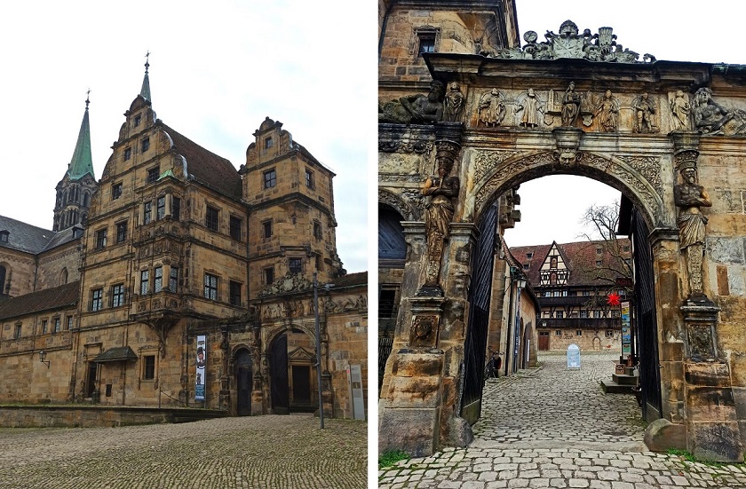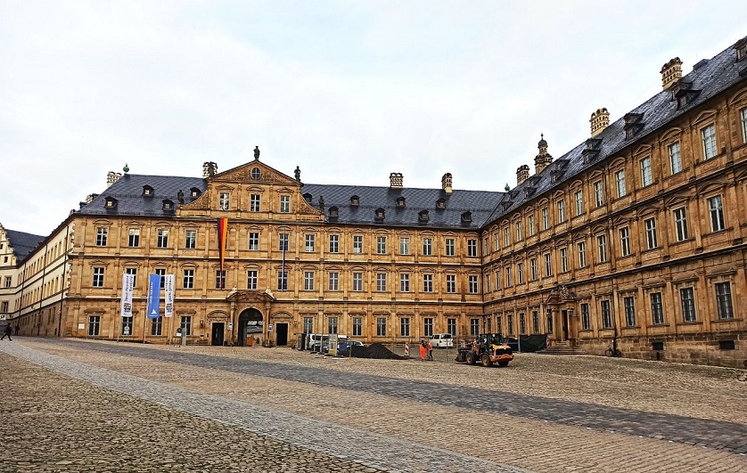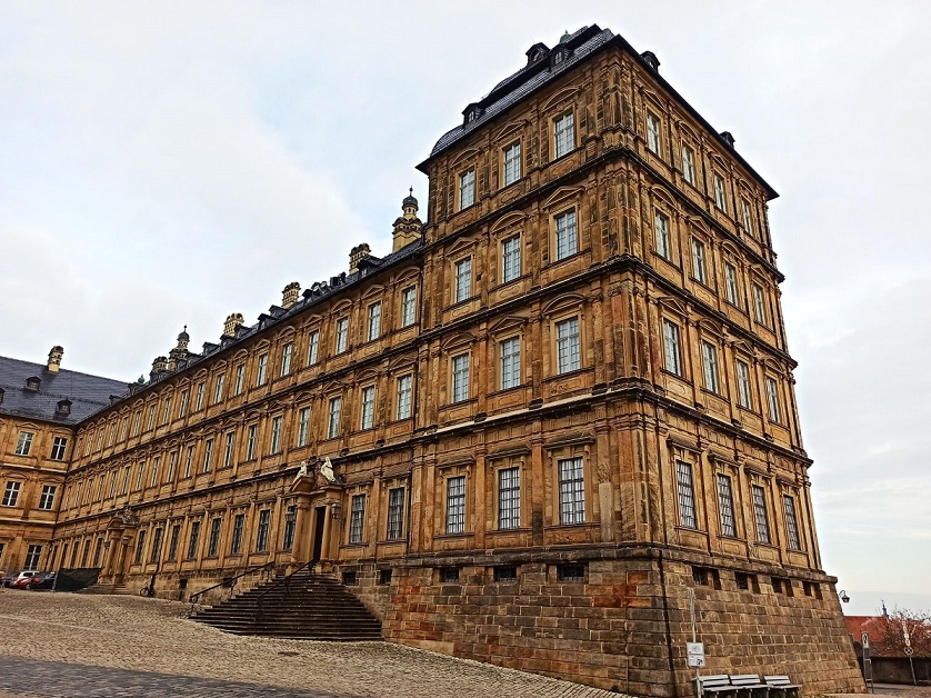 Tuż obok Katedry umiejscowiony jest równie okazały co katedra budynek – to Nowa Rezydencja Biskupia. Ten wielopoziomowy budynek od 1602 r. był siedzibą biskupów książęcych z Bambergu i zastąpił Stary Dwór. Co ciekawe, budowla ta jest pierwszym większym pałacem zbudowanym na terenie Frankonii w erze absolutyzmu. Obecnie w kompleksie piaskowcowym mieści się Biblioteka Państwowa i Państwowa Galeria w Bambergu. Ja co prawda nie weszłam do środka, ale podobno odbywają się wycieczki z przewodnikiem, który oprowadza po wnętrzach Rezydencji. Wystrój sal podobno robi niesamowite wrażenie, ale z drugiej strony nie wolno robić w środku zdjęć. Przy następnej okazji zdecyduję się na wycieczkę po wnętrzach Nowej Rezydencji.