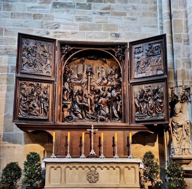 - Na tyłach Katedry znajduje się również nagrobek Henryka II Świętego i Kunegundy – zdecydowanie warto przyjrzeć się bocznym scenom przedstawiającym życie cesarskiej pary.