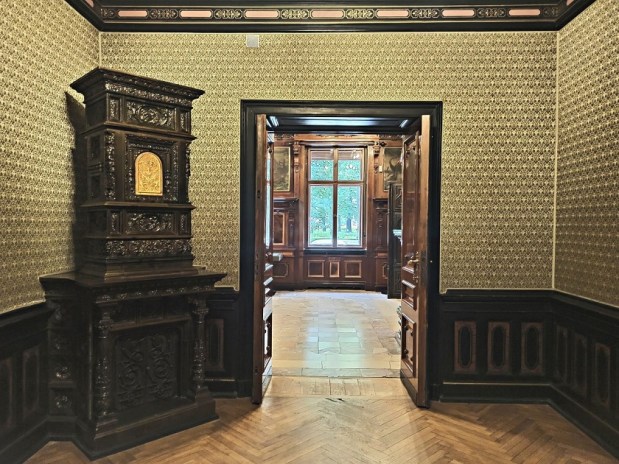 Co prawda nie przetrwało zbyt wiele wnętrz, ale za to są znakomicie zachowane – można sobie wyobrazić, że cały pałac był tak piękne udekorowany. Wyposażenie pałacu sprowadzono z Berlina, Drezna oraz Paryża. Do najciekawszych pomieszczeń należy m.in.: gabinet, sala lustrzana, jadalnia, pokój mauretański czy neorokokowa sypialnia. W ich wnętrzach znajdują się boazerie, wzorzyste tapety i malowidła, cenne piece kafelkowe oraz kredensy. W gabinecie byłego właściciela widnieje cenna mozaika weneckiego sztukatora Antonio Salviati’ego z 1886 roku. Natomiast nie zachowało się wyposażenie apartamentów prywatnych na I piętrze, poza sztukateriami sufitów, posadzką w łazience oraz częścią oryginalnej stolarki okiennej. Dziś są to sale wystaw czasowych Muzeum.
