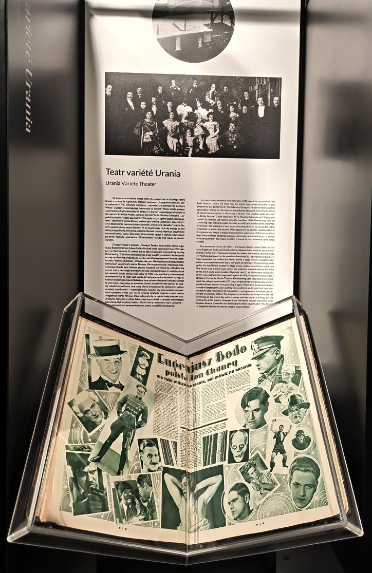 Kolejna część ekspozycji to epoka międzywojenna – okres rozkwitu filmowej rozrywki. Zbiór programów filmowych kin, plakaty i fotosy, a nawet oryginalna suknia Jadwigi Smosarskiej – jednej z największych aktorek tamtych czasów. Wszystkie te eksponaty wprowadzają nas w klimat czasów, kiedy kino szturmem zdobywało swoich wielbicieli i biło rekordy popularności.