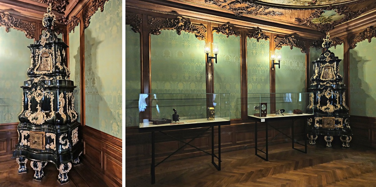 Co prawda nie przetrwało zbyt wiele wnętrz, ale za to są znakomicie zachowane – można sobie wyobrazić, że cały pałac był tak piękne udekorowany. Wyposażenie pałacu sprowadzono z Berlina, Drezna oraz Paryża. Do najciekawszych pomieszczeń należy m.in.: gabinet, sala lustrzana, jadalnia, pokój mauretański czy neorokokowa sypialnia. W ich wnętrzach znajdują się boazerie, wzorzyste tapety i malowidła, cenne piece kafelkowe oraz kredensy. W gabinecie byłego właściciela widnieje cenna mozaika weneckiego sztukatora Antonio Salviati’ego z 1886 roku. Natomiast nie zachowało się wyposażenie apartamentów prywatnych na I piętrze, poza sztukateriami sufitów, posadzką w łazience oraz częścią oryginalnej stolarki okiennej. Dziś są to sale wystaw czasowych Muzeum.