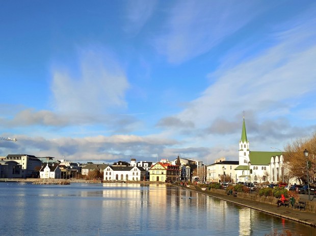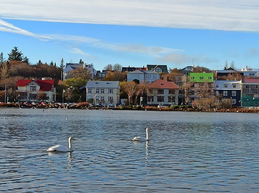 Jezioro z każdej strony otoczone jest kilkoma zabytkowymi budynkami, między innymi ratuszem miejskim, wolnym kościołem luterańskim, Galerią Narodową Islandii czy pomnikiem poświęconym anonimowemu biurokracie. Przyznaję, że park i jezioro, w otoczeniu nieśmiałych promieni słonecznych i błękitnym niebem zrobiły na mnie duże wrażenie.