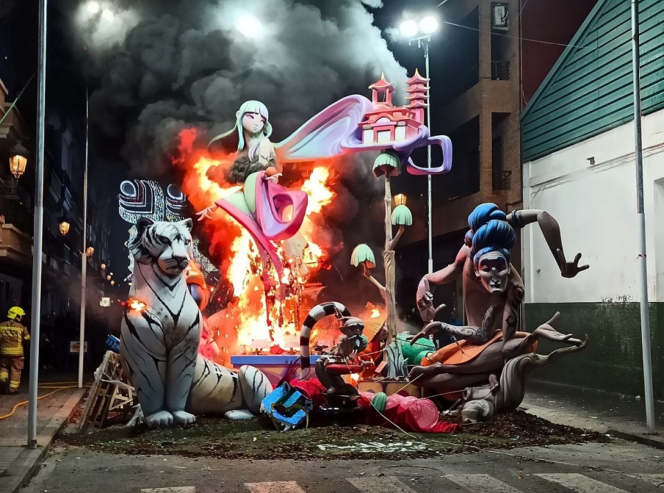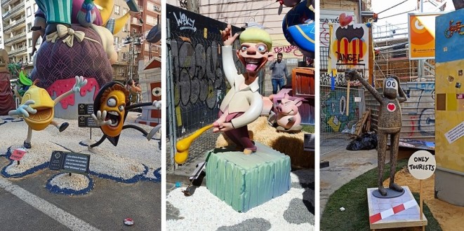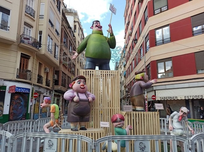 - bezpieczeństwo na niskim poziomie – figury ustawione są na ulicach całej Walencji. Te największe znajdziemy w ścisłym centrum, ale również w dalszych zakamarkach miasta, w wąskich uliczkach nie trudno je znaleźć. Co prawda są one odgrodzone i w chwili ich podpalania tłumy obserwujących muszą odsunąć się na bezpieczną odległość. Plusem jest to, że żadna falla nie może zostać podpalona bez obecności strażaków, będących cały czas w gotowości. Nie mniej jednak, pomimo czujności bomberos, wystarczy sekunda nieuwagi i budynek zajmie się ogniem. Uliczki są tak wąskie, a figury wielkie i dotykają balkonów, więc istnieje ogromne ryzyko, że ogień z łatwością przedostanie się do domów.