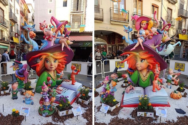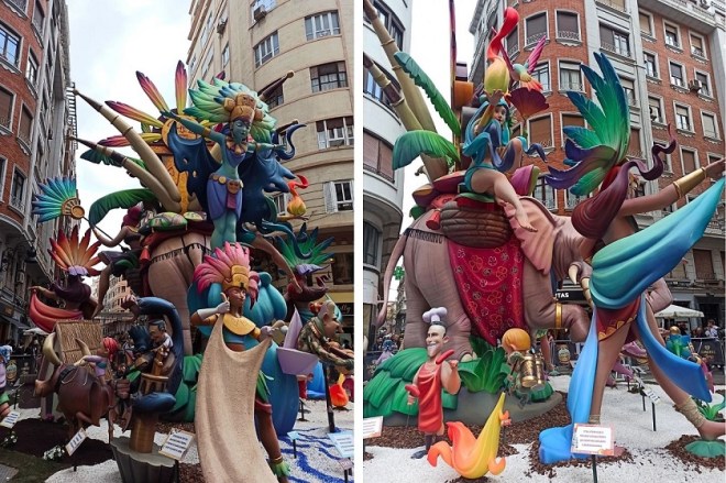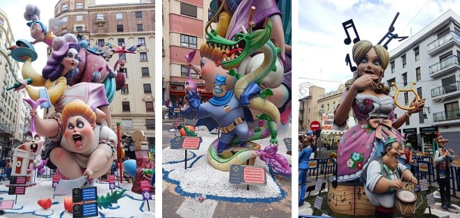 Najbardziej rozpoznawalnym elementem święta Fallas są oczywiście wspomniane wcześniej kukły, czyli ninots (jęz. kataloński). Figury poustawiane są w całym mieście, a ich liczba często sięga 700 sztuk! Tradycja nakazuje by każda większa ulica w Walencji przygotowała własną kompozycję. Wiadomym jest, że każdy zespół chce by ich kukły były największe i najładniejsze. Ograniczeniem są bardzo duże koszty takiego przedsięwzięcia, a pieniądze pochodzą ze składek mieszkańców. Pracę takie figury zleca się profesjonalnym projektantom fallas, którzy na długie miesiące przed rozpoczęciem fiesty zaczynają przygotowywać rzeźbę z mieszanki papieru, wosku oraz innych łatwopalnych materiałów, a następnie malują ją i bogato przyozdabiają. Niektóre z nich mogą osiągać nawet 30 metrów wysokości. Ja oczywiście nie widziałam wszystkich fallas, ale te, które spotkałam po drodze były prawdziwymi dziełami sztuki.