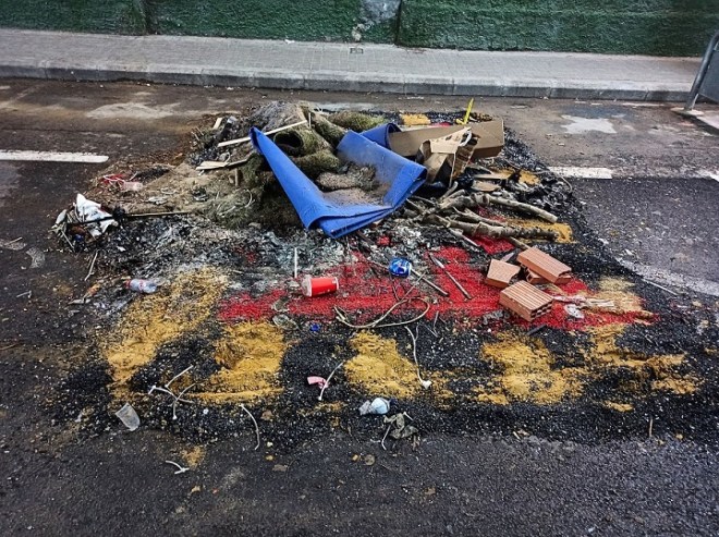 - zero ekologii – ten punkt zdecydowanie powinien widnieć na pierwszym miejscu. Chociaż oficjalnie te figury wykonywane są głównie z wosku, papieru i drewna, to na własne oczy widziałam, że znajdziemy tam też plastik, no i trudno też ukryć topiący się styropian… Efektem tego są kłęby czarnego dymu ulatniającego się nie tylko do naszych płuc, ale przede wszystkim do atmosfery. Wydawało mi się, że Hiszpanie są nowoczesnym krajem, nastawionym na ekologię i dbającym o swoje środowisko, ale jak widać żyłam w błędzie.