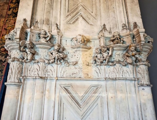Jak wspomniałam wcześniej, połowa zamku była zakryta, bo trwał remont. Druga połowa fortecy zrobiła na mnie duże wrażenie, ale to wnętrza skrywają prawdziwe skarby 🙂 Zwiedzanie zaczynamy od zabytkowego dziedzińca otoczonego krużgankami, do którego prowadzą wielkie, bogato zdobione wrota. Cechą charakterystyczną tego miejsca jest dbałość o szczegóły – znajdujące się nad łukami medaliony pochodzące z XVI wieku przedstawiające rzymskich władców lub okrągłe, mozaikowe płaskorzeźby.