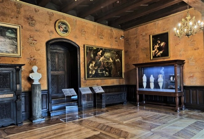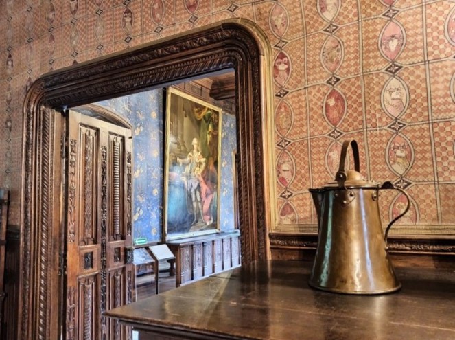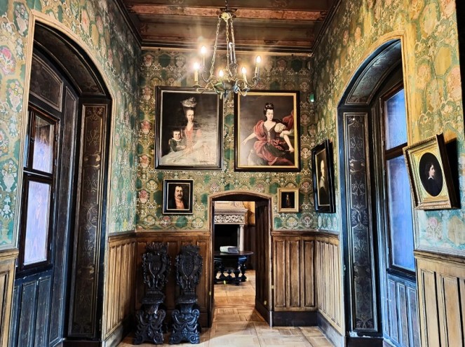 Kolejnym etapem zwiedzania jest wejście do środka rezydencji, którego największym atutem jest światowa sztuka. Nie są to wyłącznie dzieła malarskie, ale także antyczne meble oraz kolorowe, lniane tkaniny (kołtryny) zdobiące ściany. Podziwiać można ciekawy wystrój pomieszczeń: