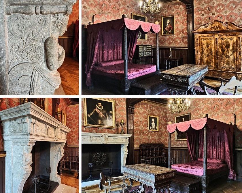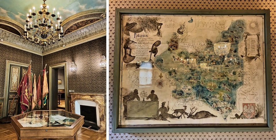 Jak już wspomniałam, hitlerowcy w trakcie II wojny światowej celowo rozgrabili zamek, a to czego nie zdołali ukraść, zniszczyli. Wnętrza są skromne, a eksponatów niewiele pozostało, ale mimo wszystko robią wielkie wrażenie. W każdej sali znajdują się czarno-białe zdjęcia sprzed wojny, ukazujące to, jak wnętrza kiedyś wyglądały.