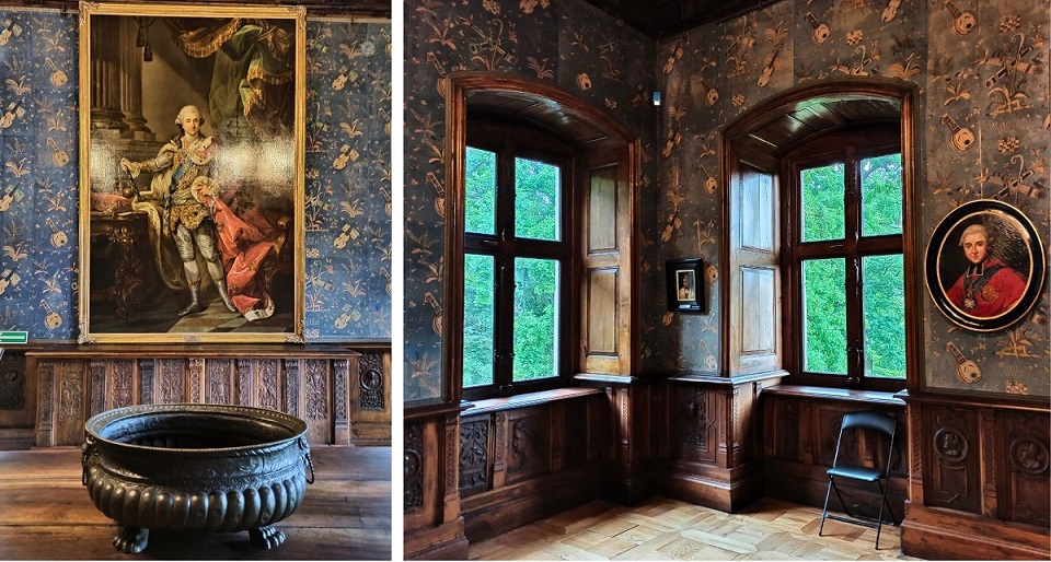 - Sala Stołowa – to kolejna pięknie zdobiona sala z imponującymi obrazami. Swoją funkcję za czasów Wacława Leszczyńskiego. To, co przykuwa tutaj uwagę to głównie wszystkim portret Stanisława Augusta Poniatowskiego w stroju koronacyjnym z XVIII wieku.
