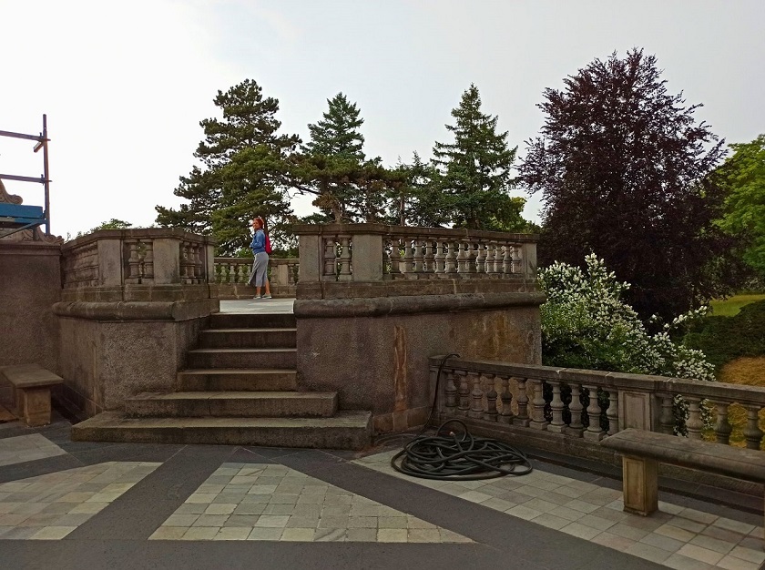 Jak wspomniałam wcześniej, połowa zamku była zakryta, bo trwał remont. Druga połowa fortecy zrobiła na mnie duże wrażenie, ale to wnętrza skrywają prawdziwe skarby 🙂 Zwiedzanie zaczynamy od zabytkowego dziedzińca otoczonego krużgankami, do którego prowadzą wielkie, bogato zdobione wrota. Cechą charakterystyczną tego miejsca jest dbałość o szczegóły – znajdujące się nad łukami medaliony pochodzące z XVI wieku przedstawiające rzymskich władców lub okrągłe, mozaikowe płaskorzeźby.