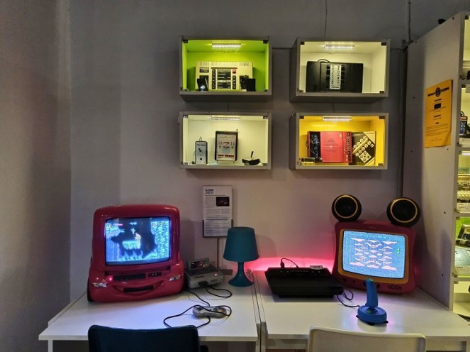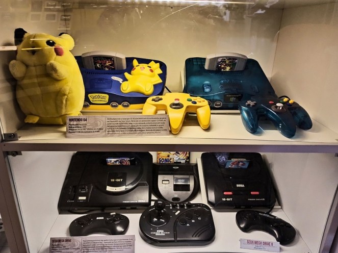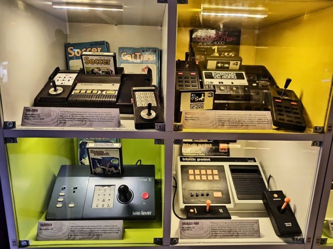 - Konsole Gier Wideo – znajdziemy tutaj najważniejsze i najciekawsze konsole gier wideo, m.in. Atari Pong z 1975 (tzw. pierwszej generacji), Nintendo 64 – 1996, Sony PlayStation – 1994, czy też Fairchild Channel F z roku 1976. Poza konsolami ważnych dla historii znajdują się tutaj także te mniej znane, ale dość nietypowe, jak np. podłączaną do magnetowidu Action Max, czy kultowego w naszym kraju Pegasusa – sprzęt, który rozpoczął w Polsce konsolową rewolucję.