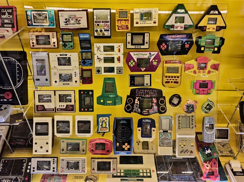 - Inne retro urządzenia – w muzeum znajdują się nie tylko komputery i gry. W gablotach duża kolekcja takich urządzeń jak kalkulatory, kasety magnetofonowe i wideo (czy pokolenie Z kiedykolwiek o tym słyszało?) oraz odtwarzacze.