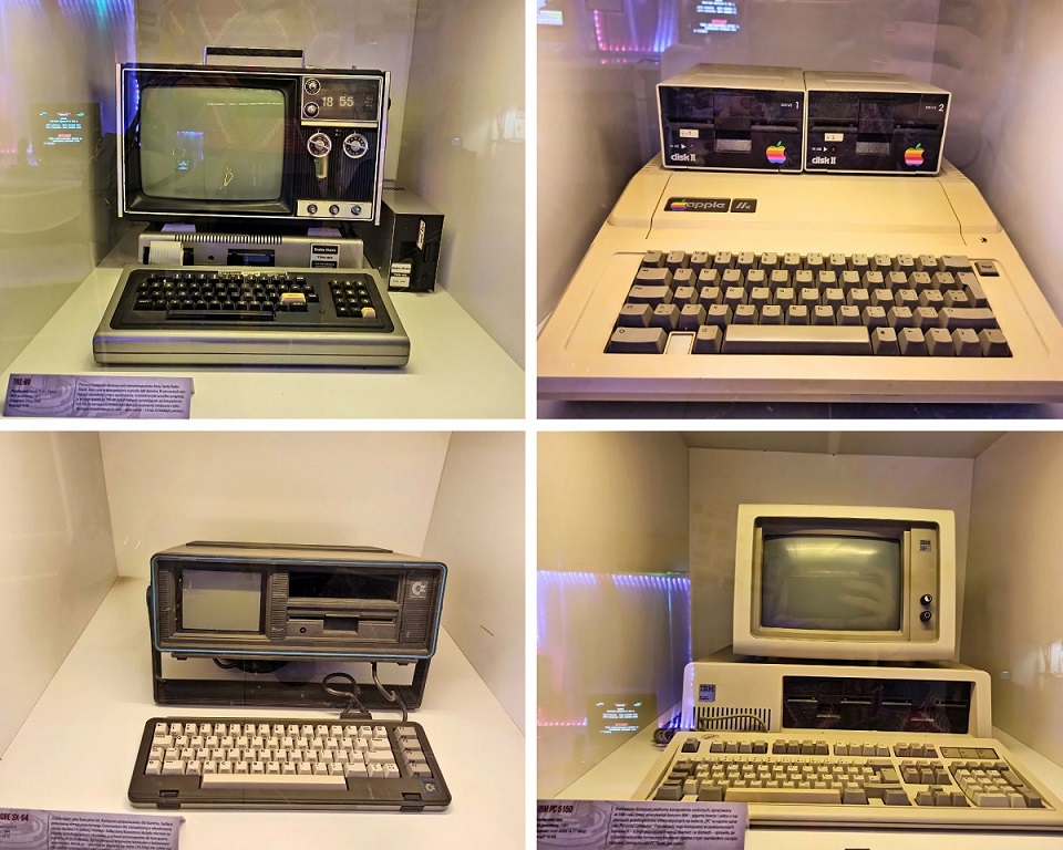 - Komputery Apple – druga połowa lat 70. i początek lat 80. ubiegłego wieku był bardzo ciekawy z punktu widzenia rewolucji komputerowej. To czas powstania jednego z pierwszych komputerów domowych Apple I. W Muzeum prezentowana jest replika tego komputera oraz egzemplarze z szeregu kolejnych modeli z lat ’80 oraz lat ’90 i wczesnych ‚2000.